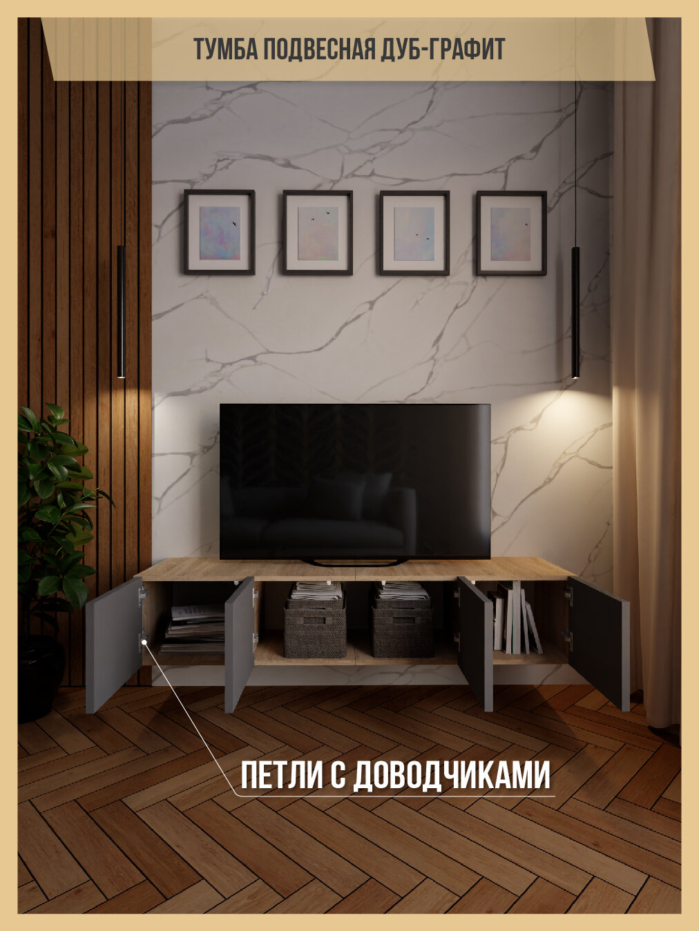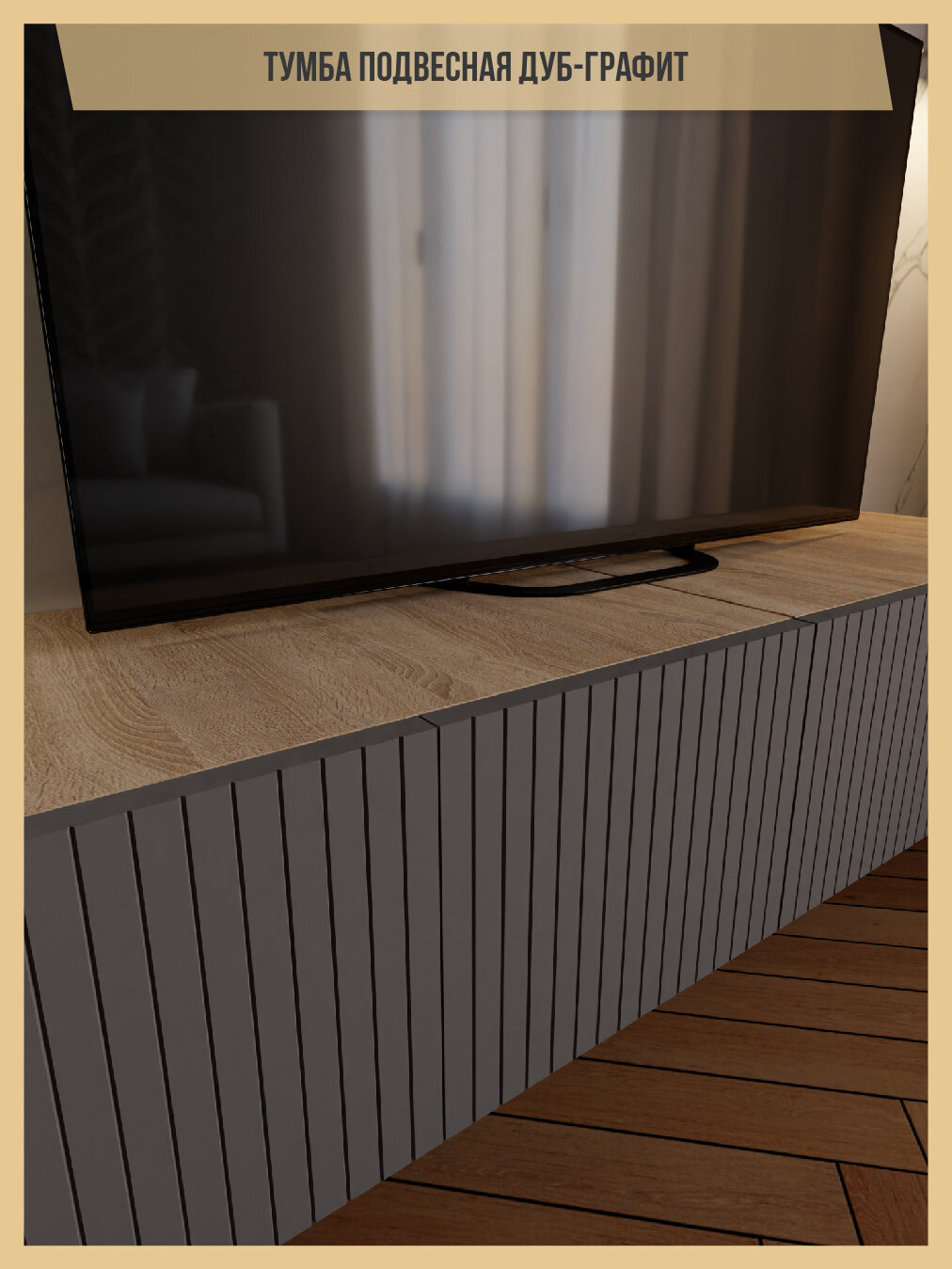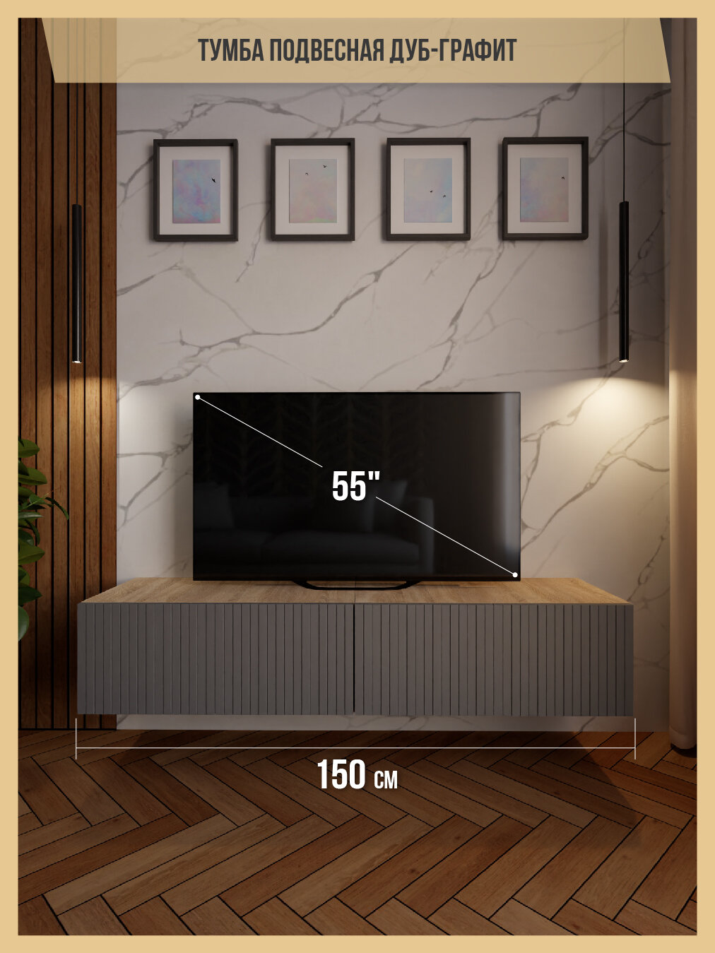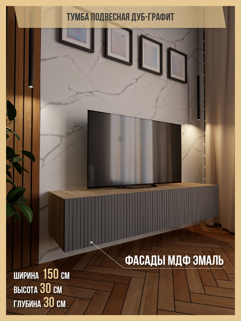 Подвесная тумба под телевизор с МДФ фасадами и прочными навесами 150х30х30 см: сравнение цен, характеристики, фото, актуальное наличие и цены.
