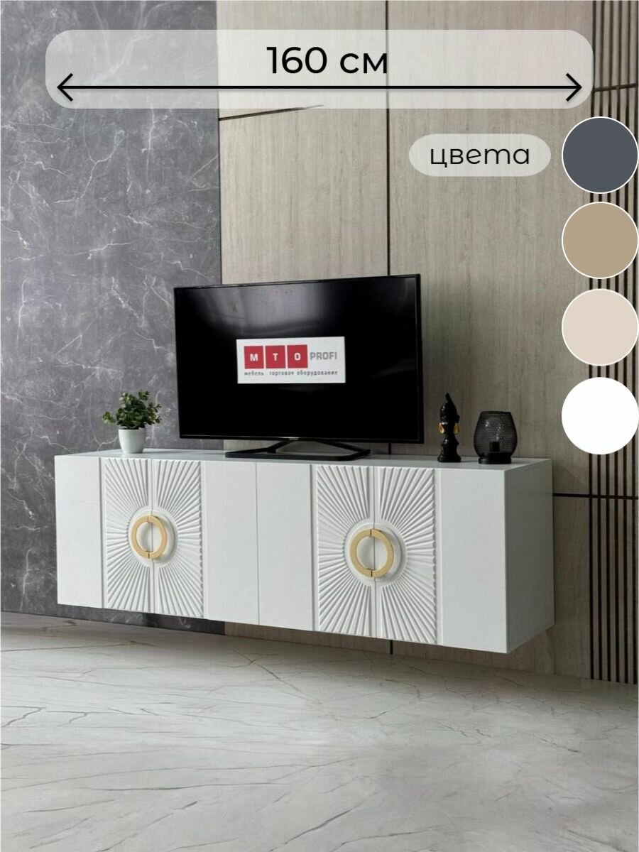 Тумба под тв; Тумба под телевизор MTO-Profi «Ария» подвесная белая (gold) 160х40х50см: сравнение цен, характеристики, фото, актуальное наличие и цены.