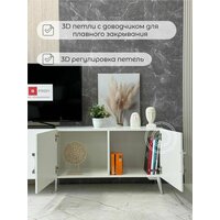 Тумба оснащена нажимным механизмом и доводчиком, что обеспечивает плавное и бесшумное закрывание дверей.