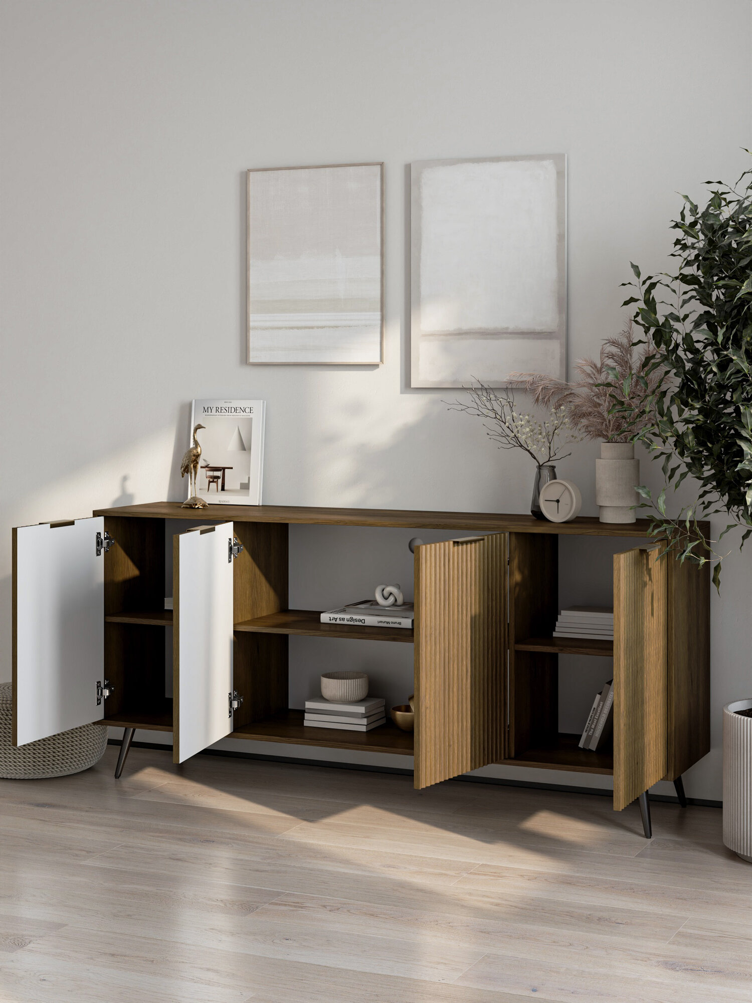 Элегантная тумба под телевизор - комод. BORDO Raenyra станет прекрасным дополнением вашего интерьера. С размерами 190 см в ширину, 40 см в глубину и 80 см в высоту, она идеально подходит для размещения телевизоров и другого оборудования. Выполненная в стильном белом цвете, эта напольная тумба под ТВ добавит свежести и современности в ваш дом.