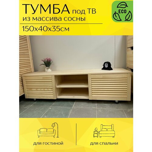 Тумба под ТВ напольная от российского производителя из натурального экологически чистого и безопасного материала - массива сосны без покрытия, поверхность подготовлена к дальнейшей покраске по Вашему желанию. Легкая сборка не займет много времени. Деревянная тумбочка на ножках с полками и жалюзийными дверцами отлично впишется в интерьер любой комнаты. Ее можно разместить в гостиной или спальне под телевизор, а также она может быть использована как столик для цветов или как полка для книг. Мебель поставляется в надежной и прочной упаковке. Перейдя в наш магазин – нажав на бренд Лесной Массив, Вы можете ознакомиться со всем перечнем товаров и собрать комплект мебели. Желаем Вам приятных покупок!