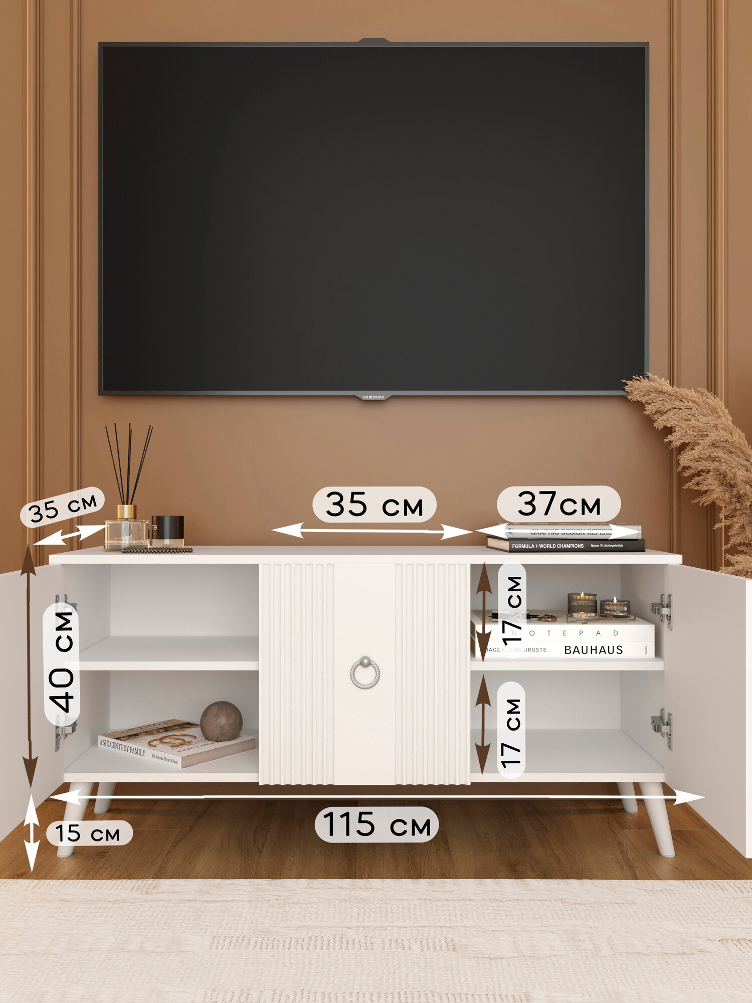 Тумба под телевизор напольная МК Перспектива, на ножках, белая, 115x35x55 см: сравнение цен, характеристики, фото, актуальное наличие и цены.