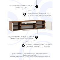 Тумба под телевизор напольная Нью-Йорк, 160х36.6х38 см, 3 ящика, 6 полок, Дуб Кастелло Бренди/Кашемир глянец исп. 3: сравнение цен, характеристики, фото, актуальное наличие и цены.