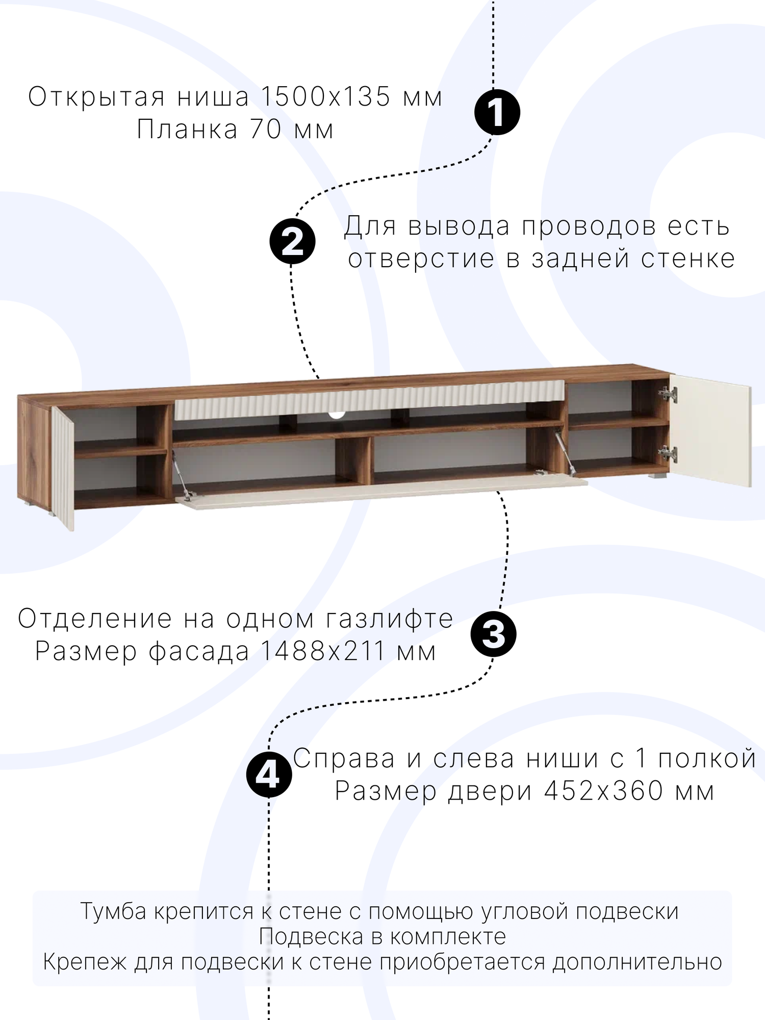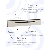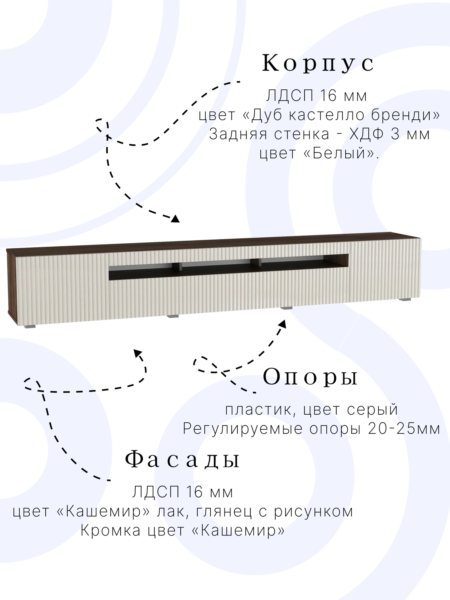 Тумба под телевизор напольная Нью-Йорк, 240х36.6х38 см, 3 ящика, 6 полок, Дуб Кастелло Бренди/Кашемир глянец исп. 3: сравнение цен, характеристики, фото, актуальное наличие и цены.