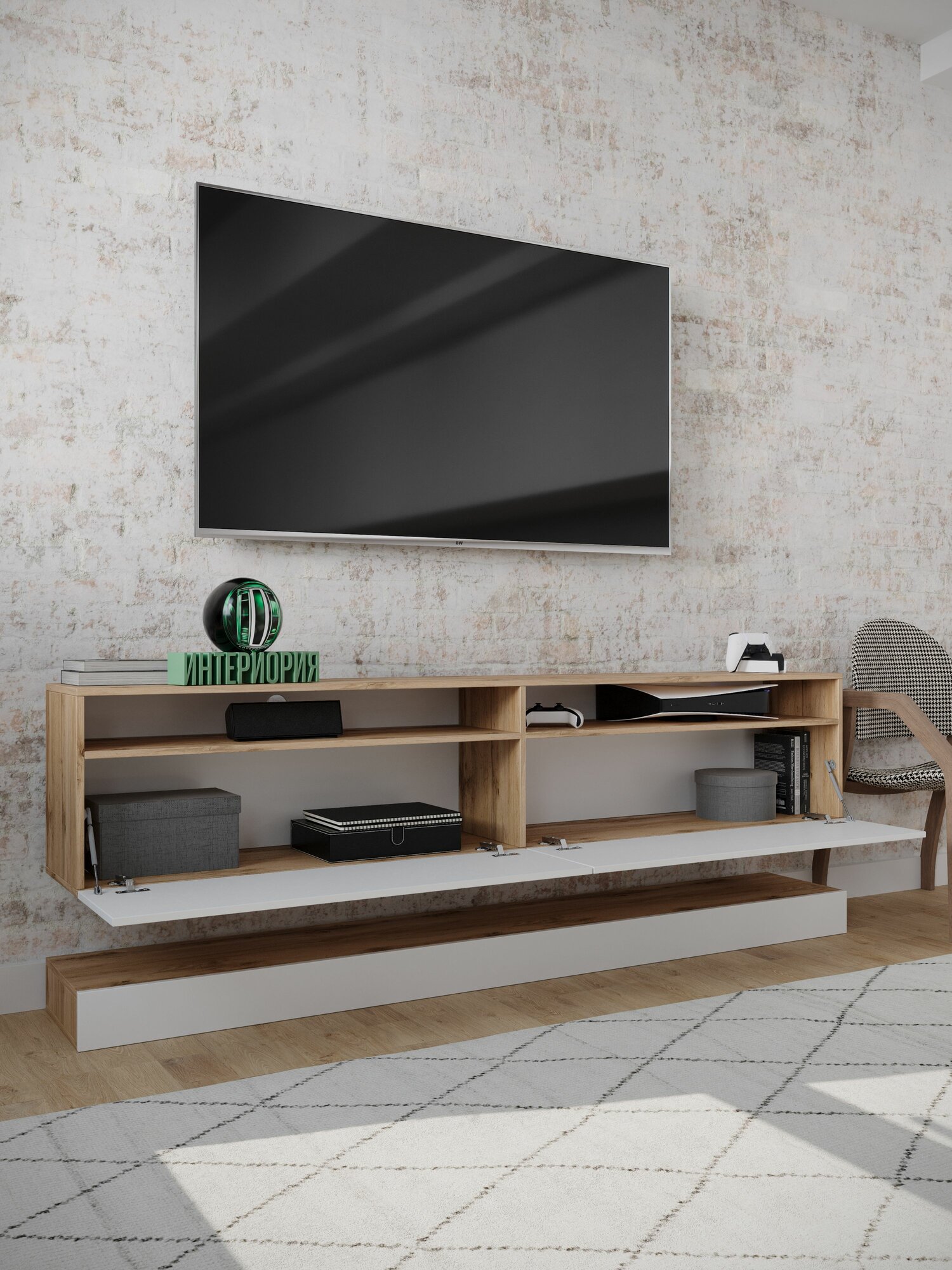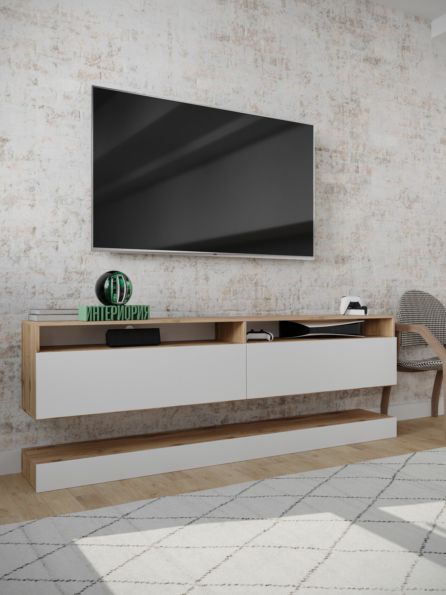 - Стильная тумба под ТВ впишется в современный, скандинавский, бохо, ретро, арт-деко интерьер
