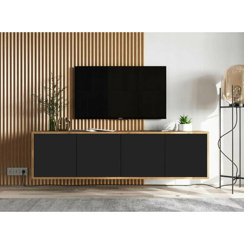 Подвесная тумба под телевизор TU-005 вместительная модель, которая без лишних затрат пространства позволит разместить телевизор большой диагонали, подойдет для любого интерьера благодаря четким прямым линиям и отсутствию видимой фурнитуры. Два закрытых отсека дает законченный внешний вид и защитит наполнение от пыли. Достоинства тв тумбы TU-005: