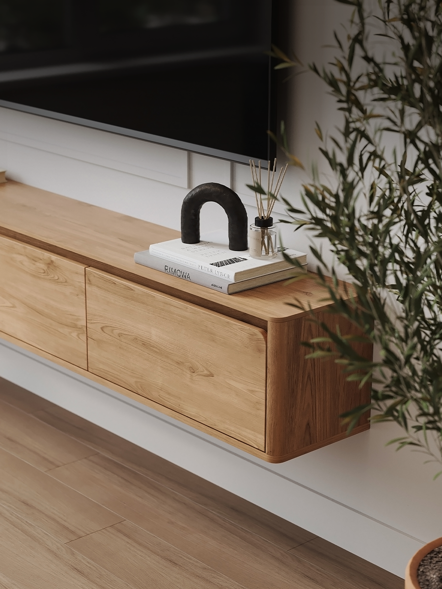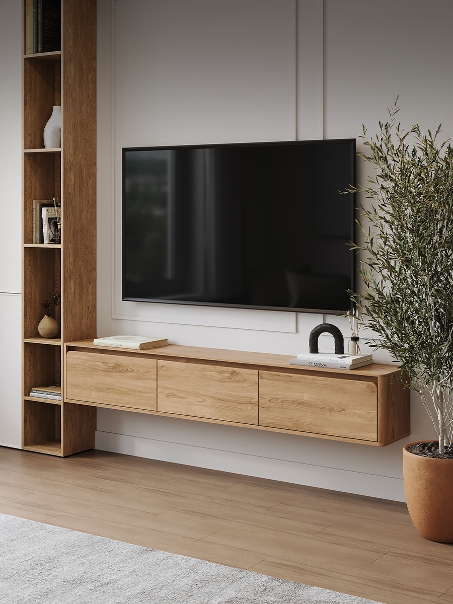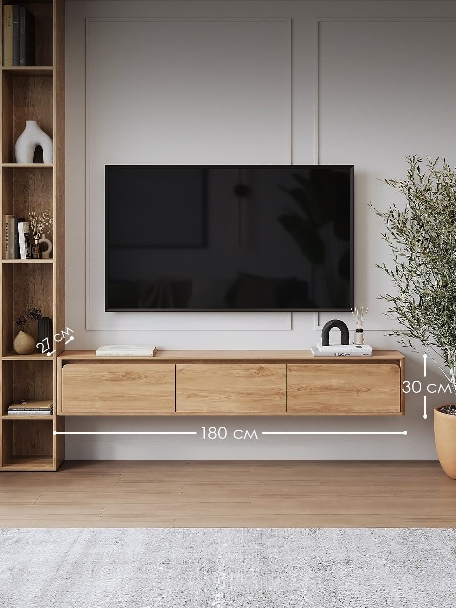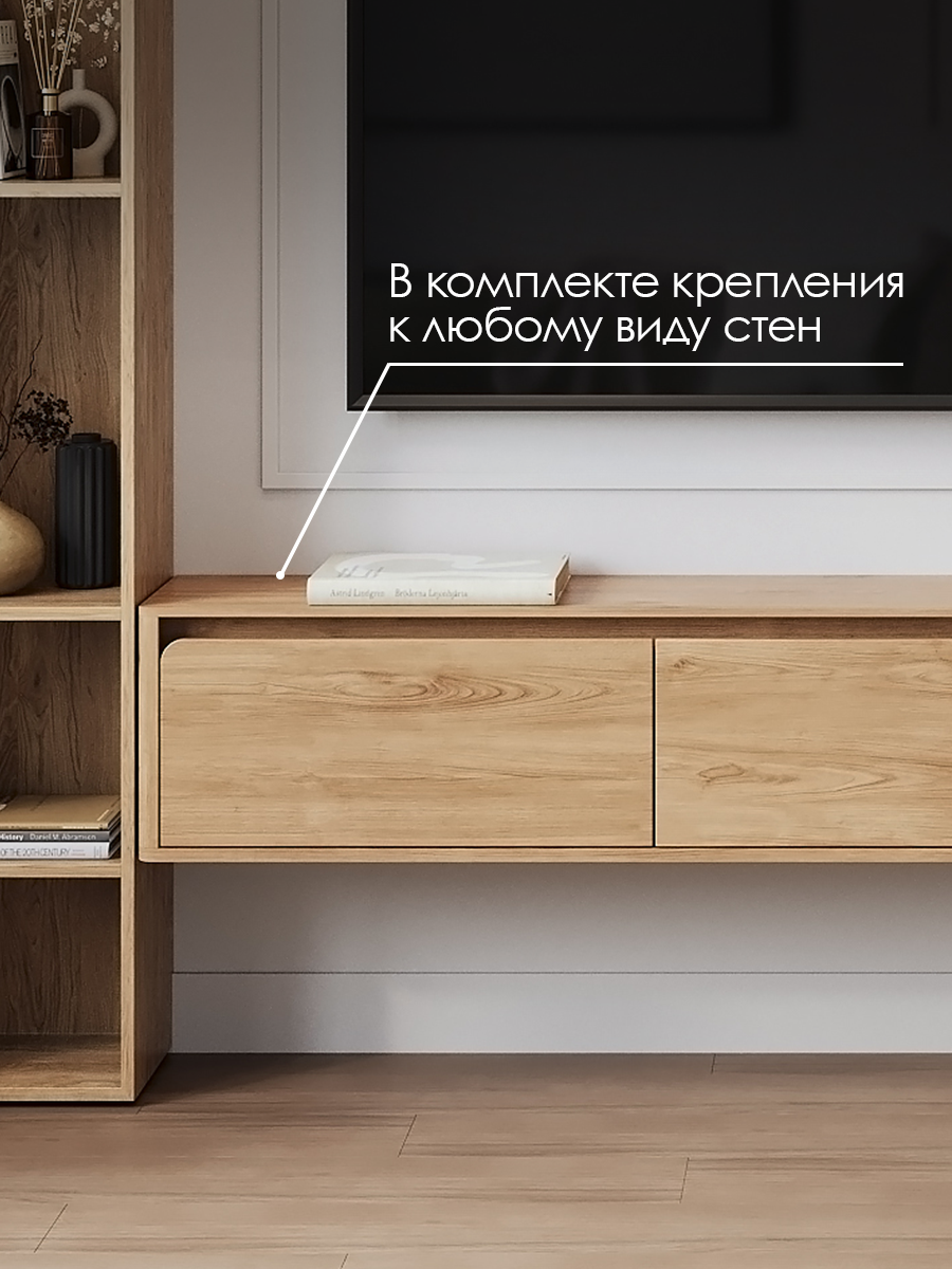 Купить Тумба под телевизор подвесная, консоль навесная Puzzlemebel 180 см, Гикори, Лоран с доставкой по всей России.