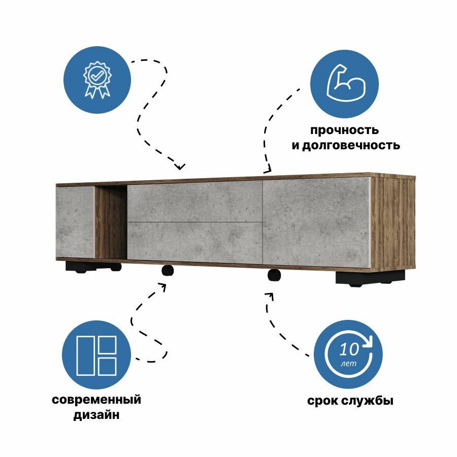 Купить Тумба под телевизор, RG-1800, 180х38х42,5 см. напольная, ЛДСП, цвет бетон с доставкой по всей России. Тумба под телевизор, RG-1800, 180х38х42,5 см. напольная, ЛДСП, цвет бетон: сравнение цен, характеристики, фото, актуальное наличие и цены.
