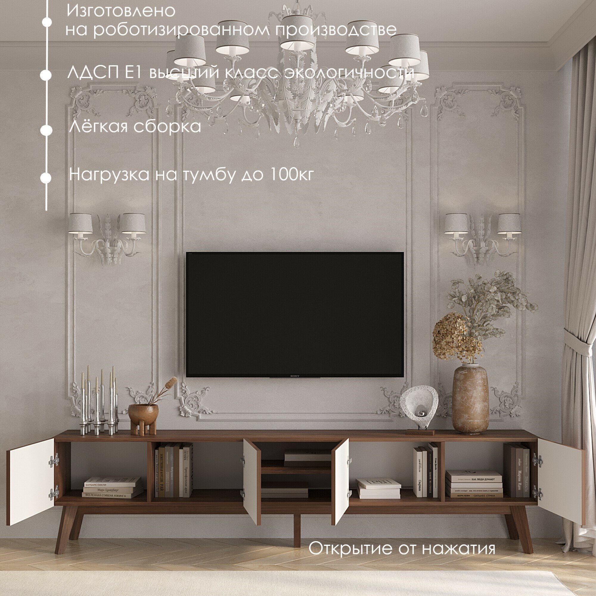 Тумба под телевизор ЦифраМебель Виктория 2100, ЛДСП/МДФ, коричневая, нажимная, 210x50x35,5 см: сравнение цен, характеристики, фото, актуальное наличие и цены.