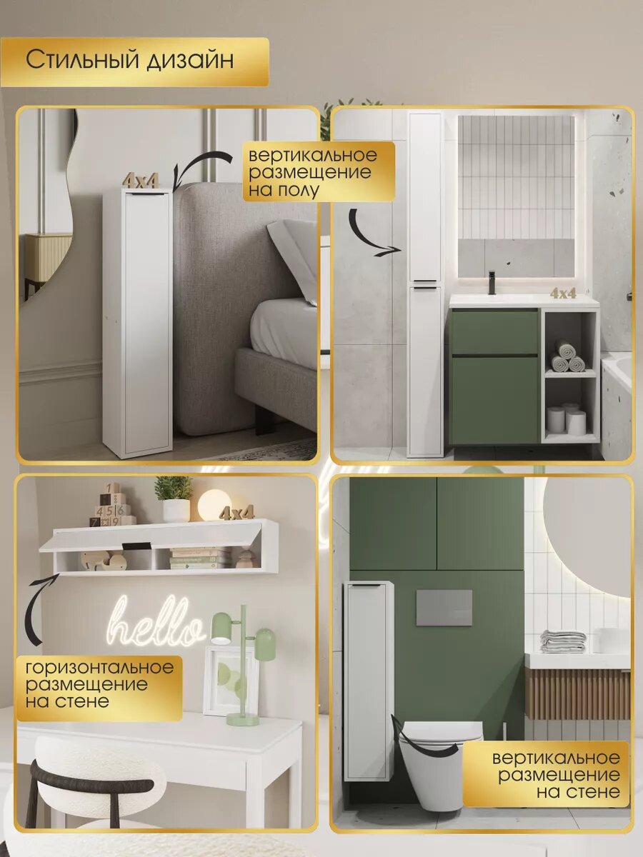 Тумба Мебель 4×4 «Чикаго», универсальная, 20,6×19,1×97 см, современный дизайн, белая