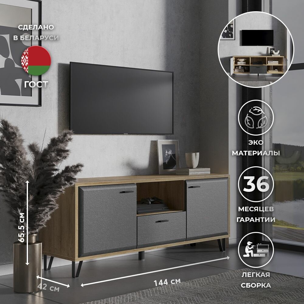 Тумба под ТВ 143,8х41,8х65,5см GRACE RTV2D1S (Дуб наварра/Графит), 3уп.: сравнение цен, характеристики, фото, актуальное наличие и цены.