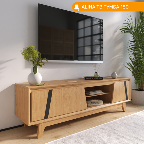 Купить Тумба под ТВ 180 ALINA из дерева, цвет светлое дерево/ черный с доставкой по всей России. Тумба под ТВ 180 ALINA из дерева, цвет светлое дерево/ черный: сравнение цен, характеристики, фото, актуальное наличие и цены.