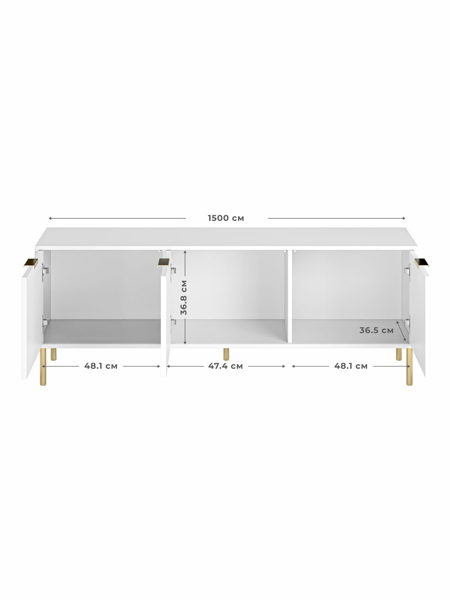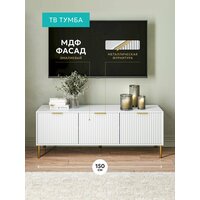 Купить Тумба под телевизор напольная 150х40х55 см, белый с золотой фурнитурой с доставкой по всей России.