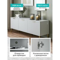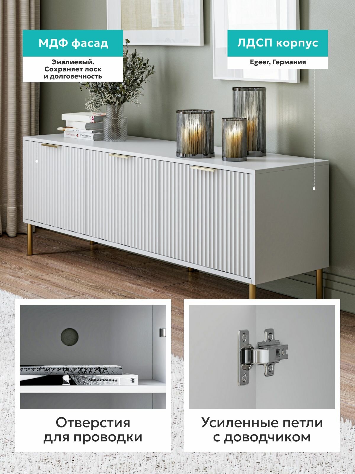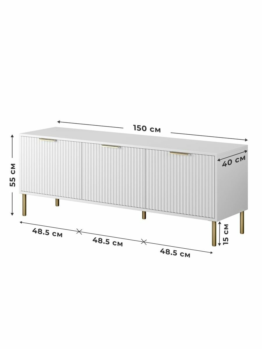 Тумба под телевизор напольная 150х40х55 см, белый с золотой фурнитурой: сравнение цен, характеристики, фото, актуальное наличие и цены.