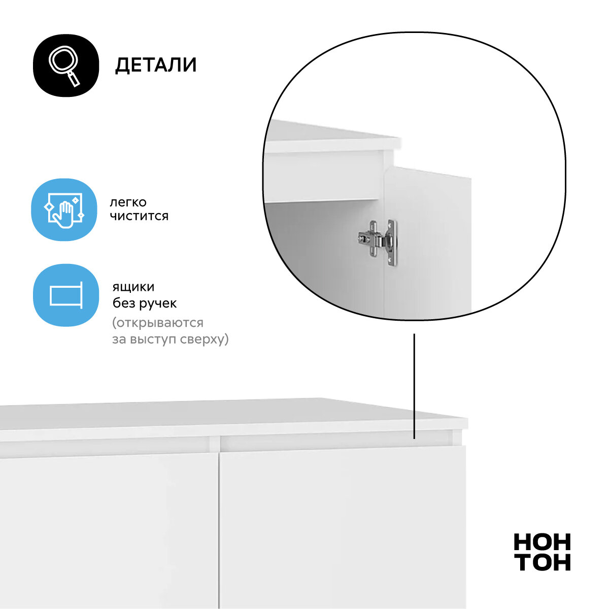 Тумба оснащена хромированной фурнитурой, что придает ей современный и стильный вид. Отсутствие ручек делает ее использование еще более удобным и безопасным.