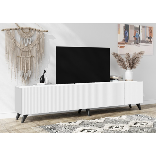 Купить Тумба под ТВ МК Стиль Сканди белый/белый глянец 213х35х35.2 см с опорами черного цвета с доставкой по всей России.