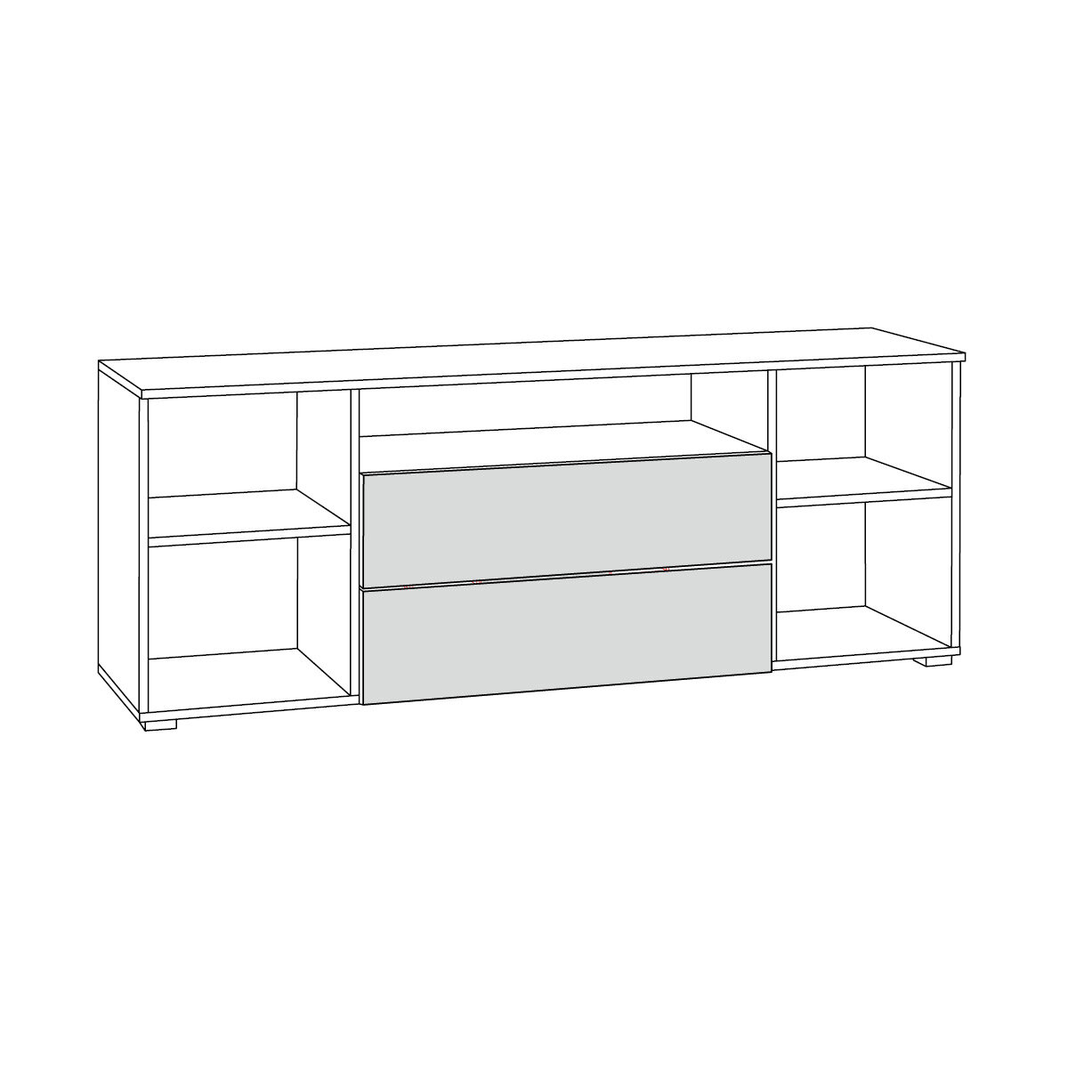 - Тумба под ТВ предоставляет удобное и стильное решение для организации развлекательного пространства. В верхней части тумбы под ТВ по центру расположена ниша, идеальная для размещения аппаратуры или декоративных элементов. Два выдвижных ящика по центру внизу обеспечивают дополнительное пространство для хранения.