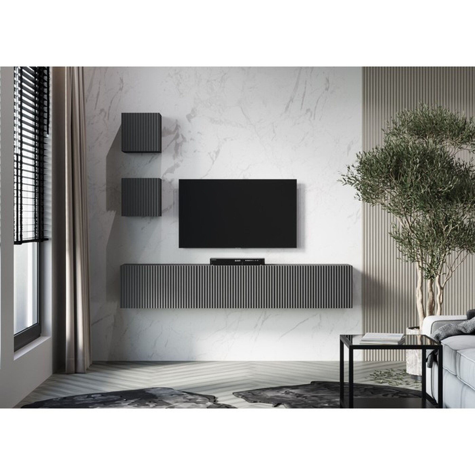 Тумба под ТВ подвесная Инфинити, 2400х330х330, цвет графит/ эйхория, МДФ