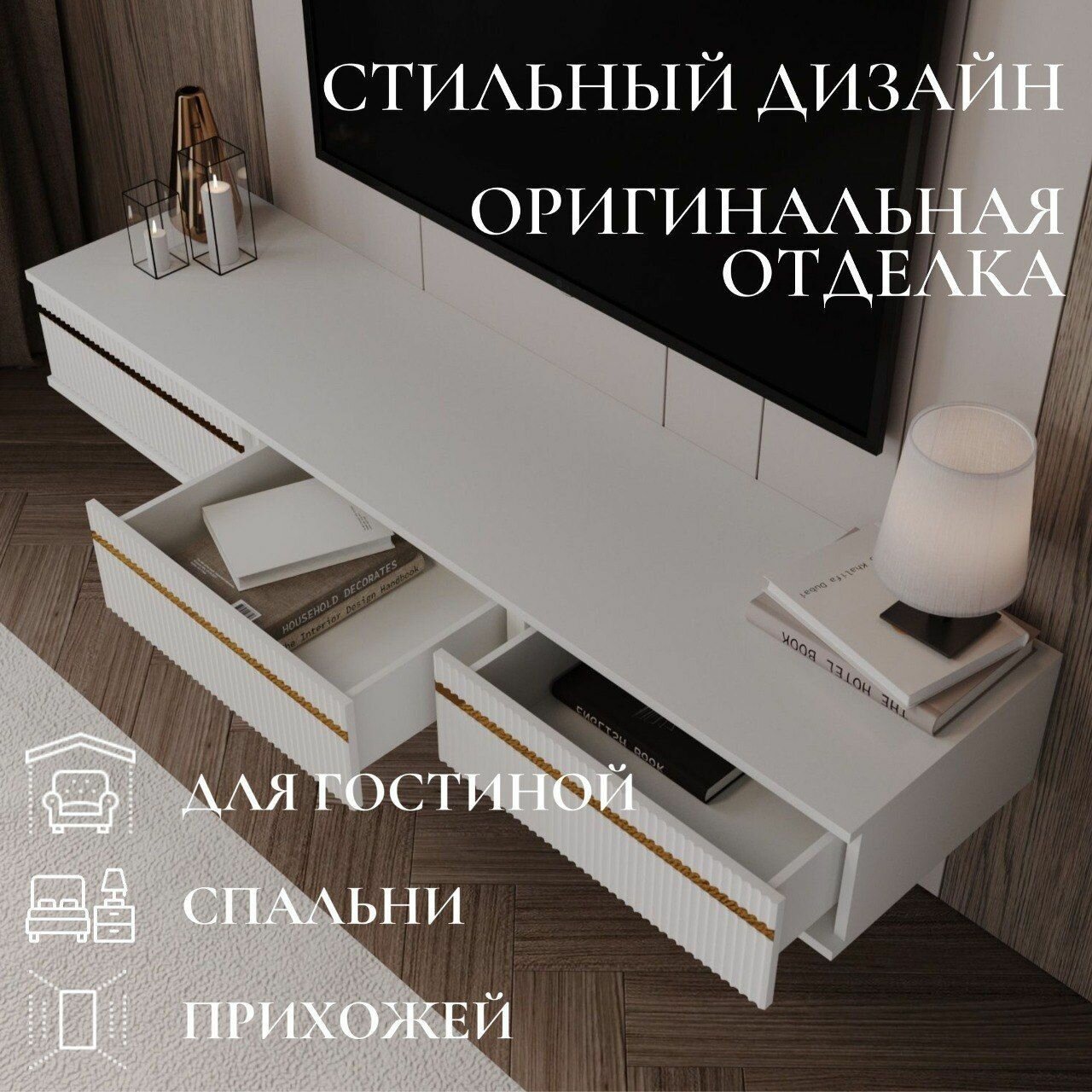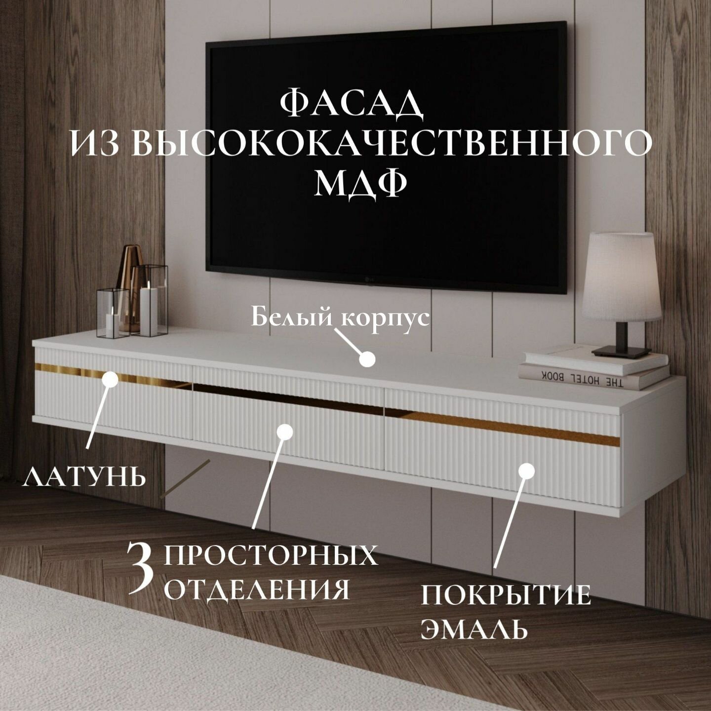 Купить Тумба под ТВ подвесная с ящиками, эмаль и декор из латуни, «Голд» Уютная Мебель, белая, 163,2х40,7х21,6 см с доставкой по всей России. Тумба под ТВ подвесная с ящиками, эмаль и декор из латуни, «Голд» Уютная Мебель, белая, 163,2х40,7х21,6 см: сравнение цен, характеристики, фото, актуальное наличие и цены.