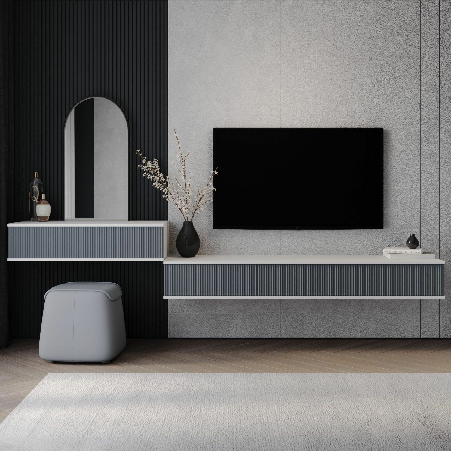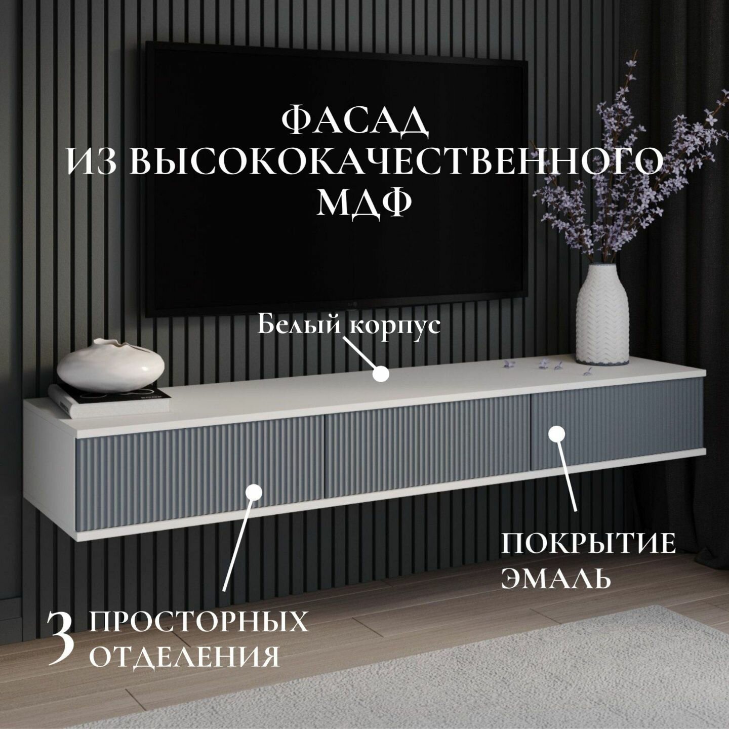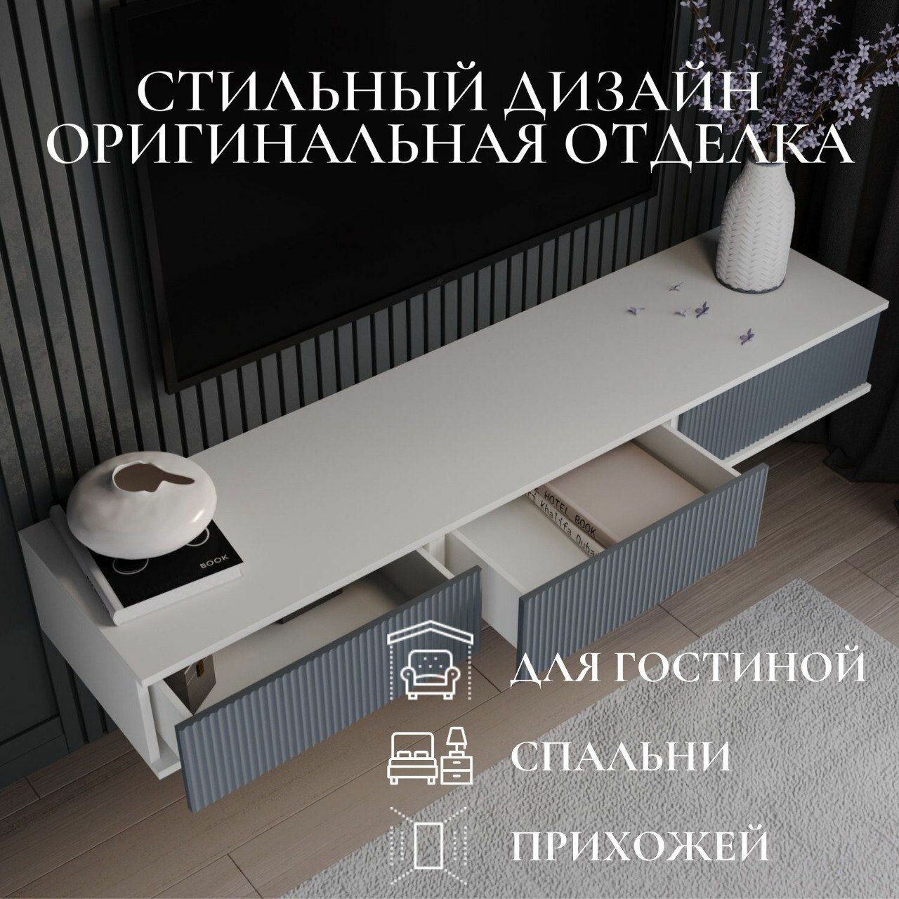 Купить Тумба под ТВ подвесная с ящиками, эмаль, серая «Мист» Уютная Мебель, 163,2х40,7х21,6 см с доставкой по всей России. Тумба под ТВ подвесная с ящиками, эмаль, серая «Мист» Уютная Мебель, 163,2х40,7х21,6 см: сравнение цен, характеристики, фото, актуальное наличие и цены.
