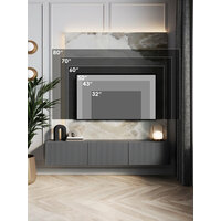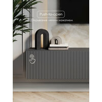 Тумба под ТВ с лаконичным дизайном, вертикальной фрезеровкой, продуманными габаритами гармонично сочетаются в Камелия. ТВ тумба с 3 матовыми дверцами, с красивыми пропорциями и изысканной отделкой.