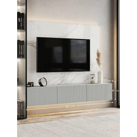 ТВ тумба с 3 Серыми матовыми дверцами, с красивыми пропорциями и изысканной отделкой.