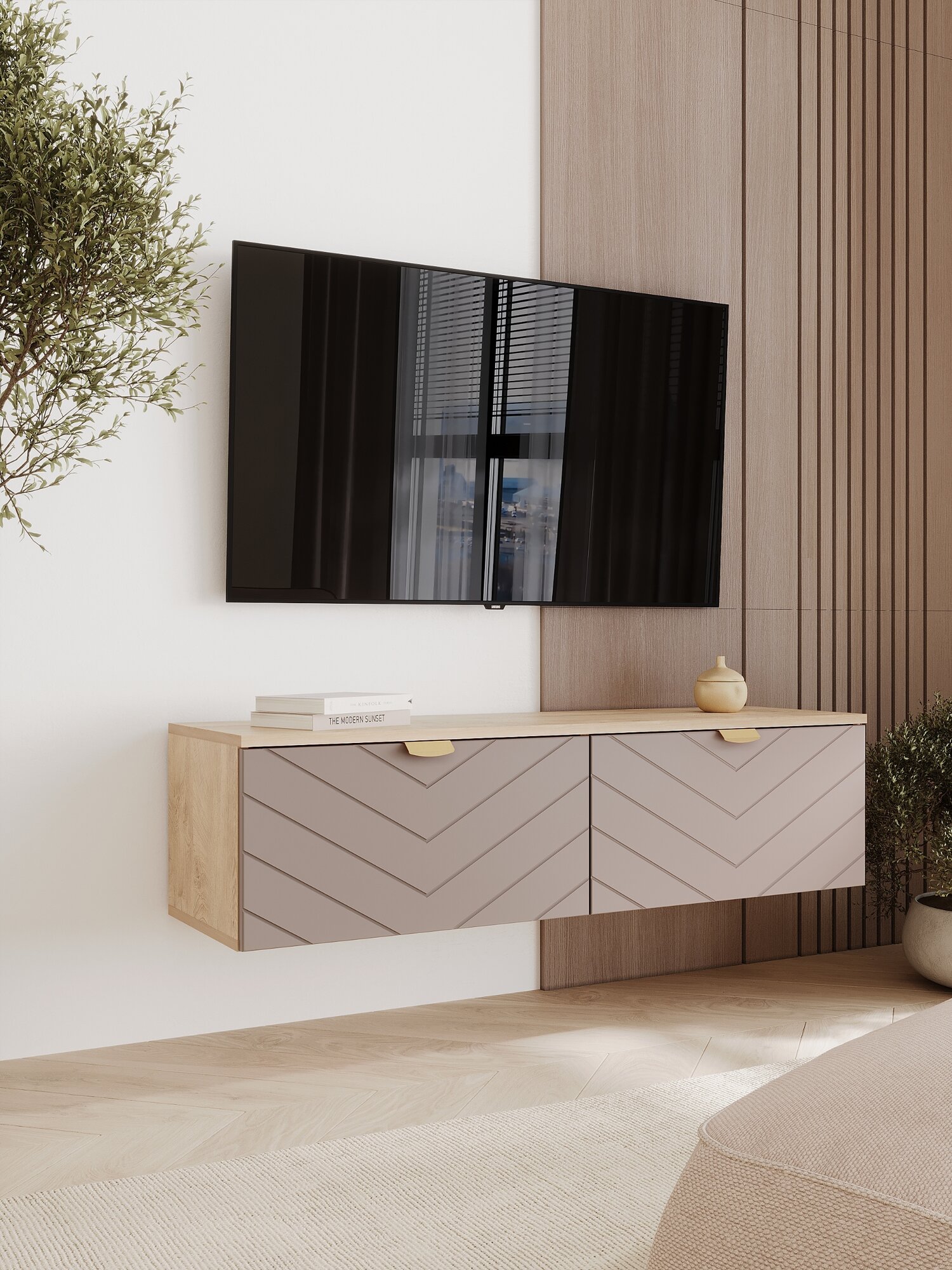 Тумба может быть как напольным вариантом, так и подвесной консолью, что открывает широкие возможности для размещения в любом интерьере. Благодаря продуманной конструкции, тумба станет не только функциональным элементом для размещения телевизора, но и стильным акцентом в интерьере в стиле минимализм или неоклассика.