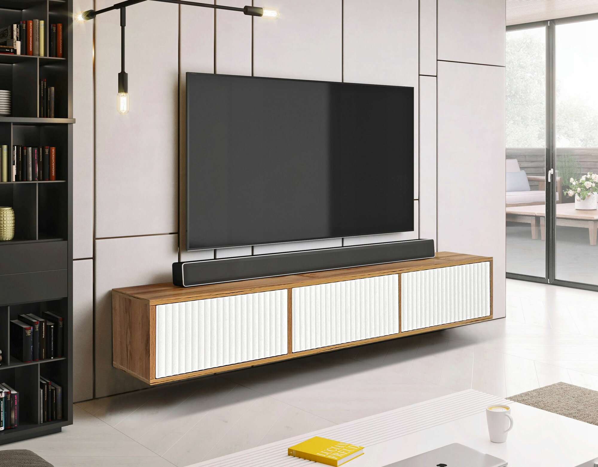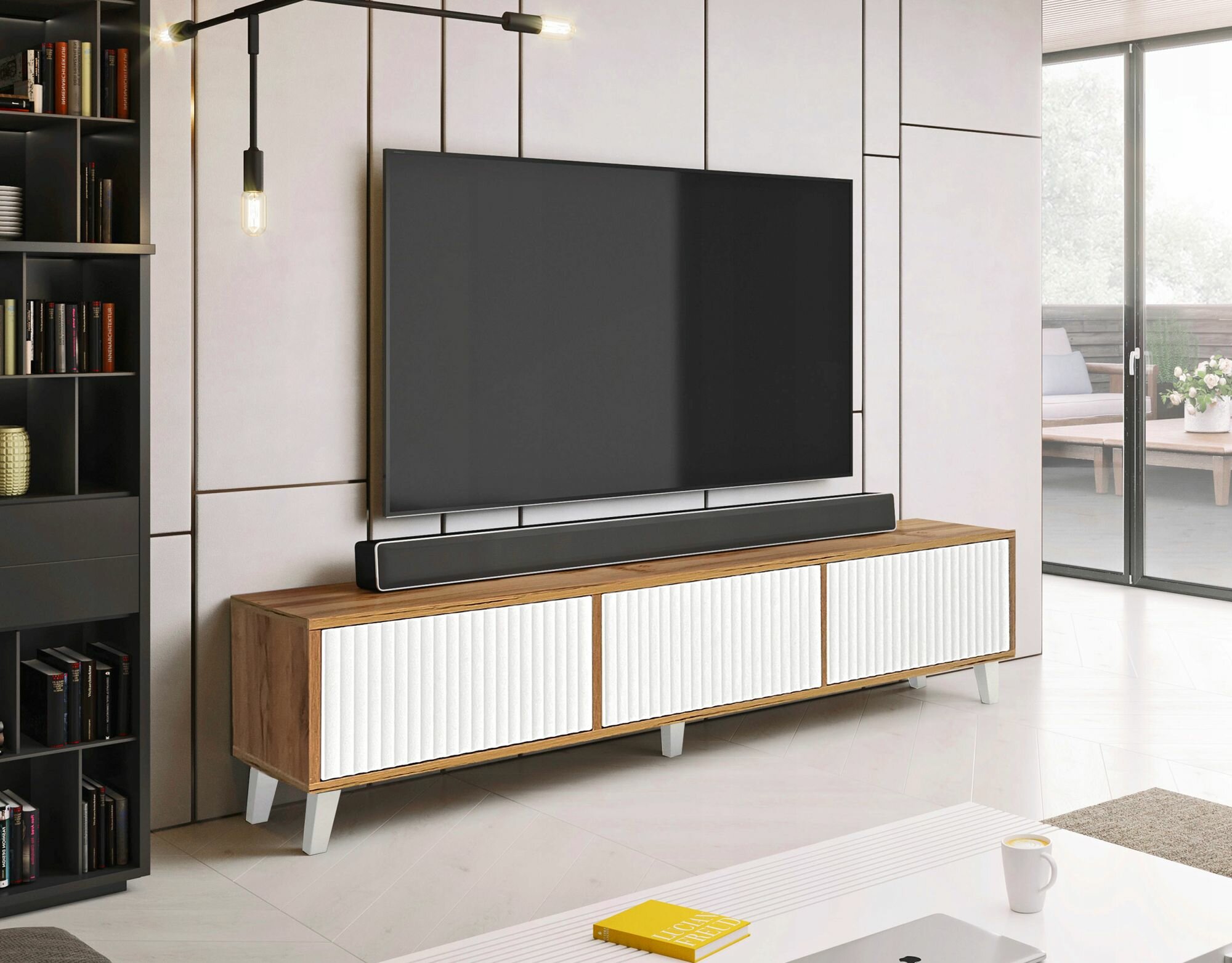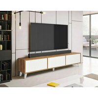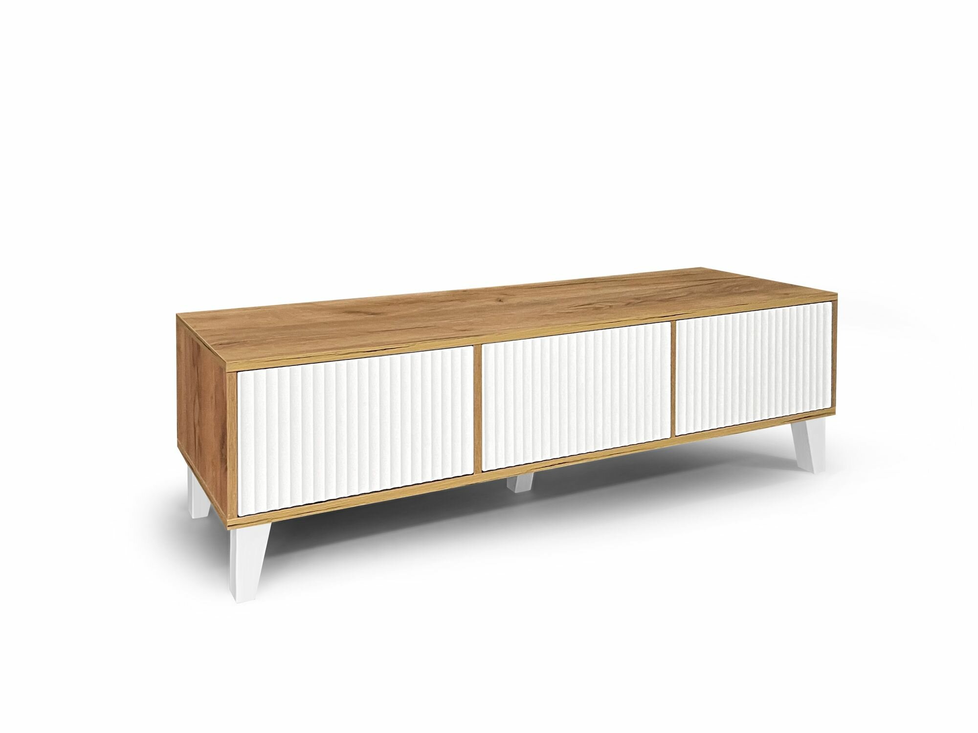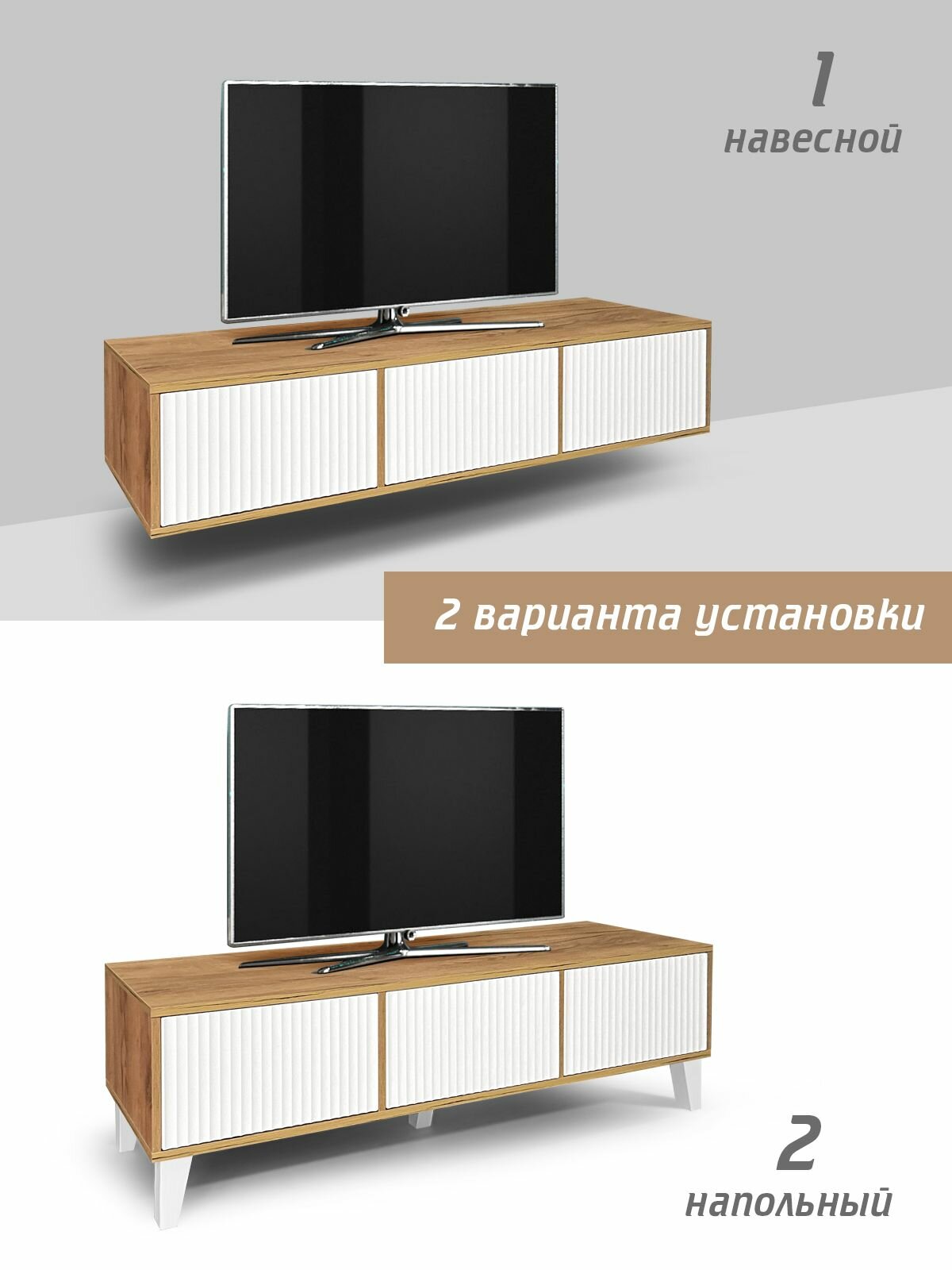 Купить Тумба под ТВ «Волна Т-11» , 137х36х40 см, 3 ящика, цвет Крафт золотой/Белый, корпус ЛДСП, фасад МДФ с доставкой по всей России.