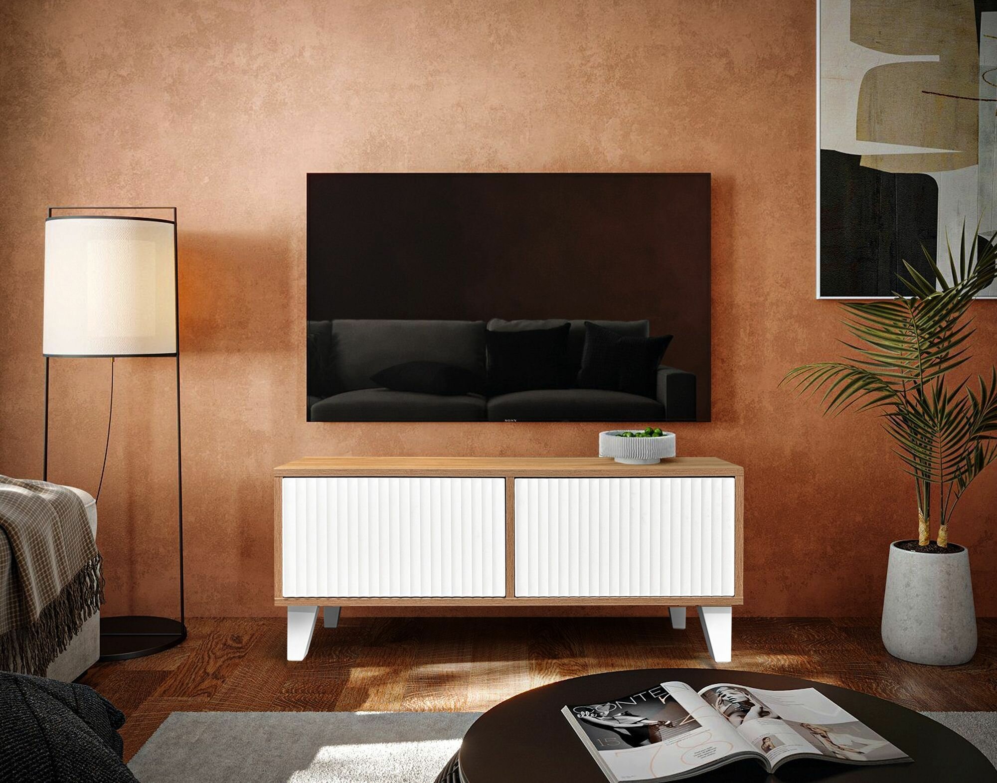 Купить Тумба под ТВ «Волна Т-13» , 92х36х40 см, 2 ящика, цвет Крафт золотой/Белый, корпус ЛДСП, фасад МДФ с доставкой по всей России.