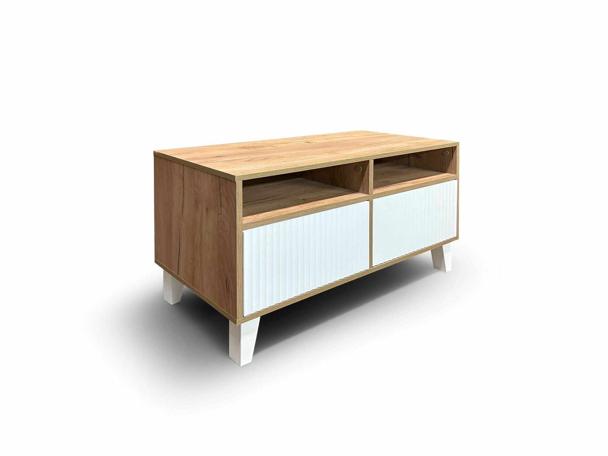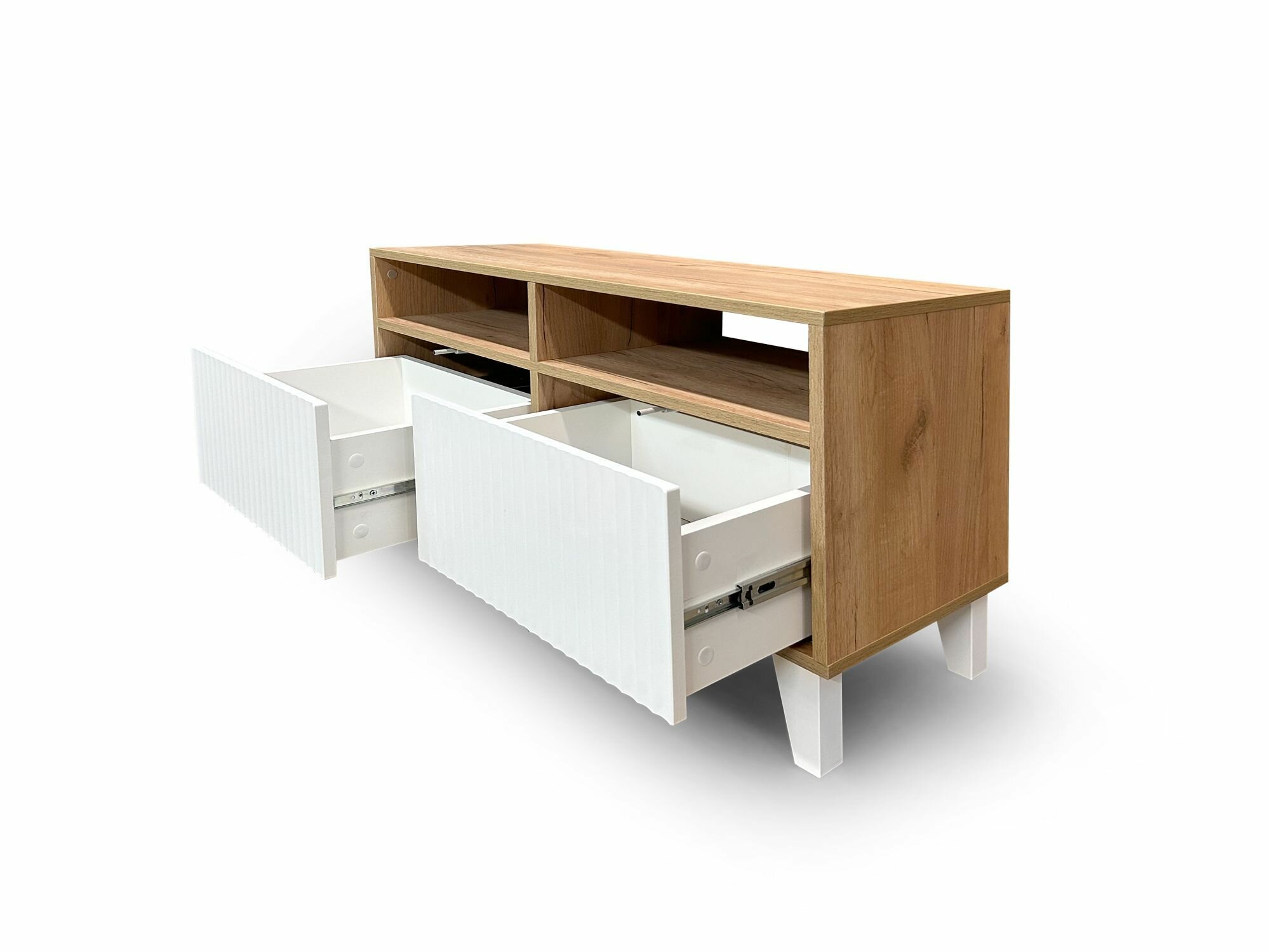 Купить Тумба под ТВ «Волна Т-14» , 92х36х53 см, 2 ящика, 2 ниши, цвет Крафт золотой/Белый, корпус ЛДСП, фасад МДФ с доставкой по всей России.