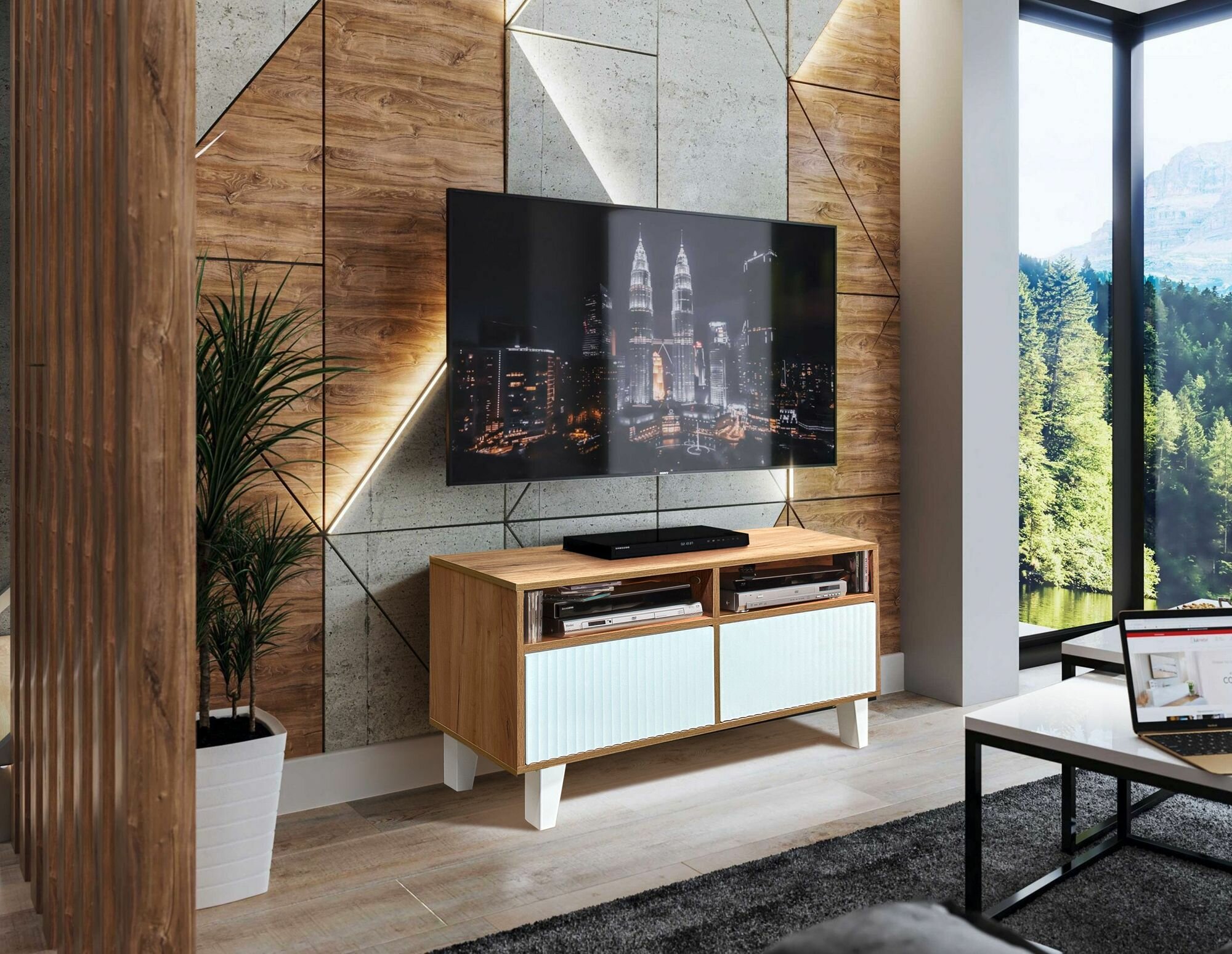 Тумба под ТВ «Волна Т-14» , 92х36х53 см, 2 ящика, 2 ниши, цвет Крафт золотой/Белый, корпус ЛДСП, фасад МДФ: сравнение цен, характеристики, фото, актуальное наличие и цены.