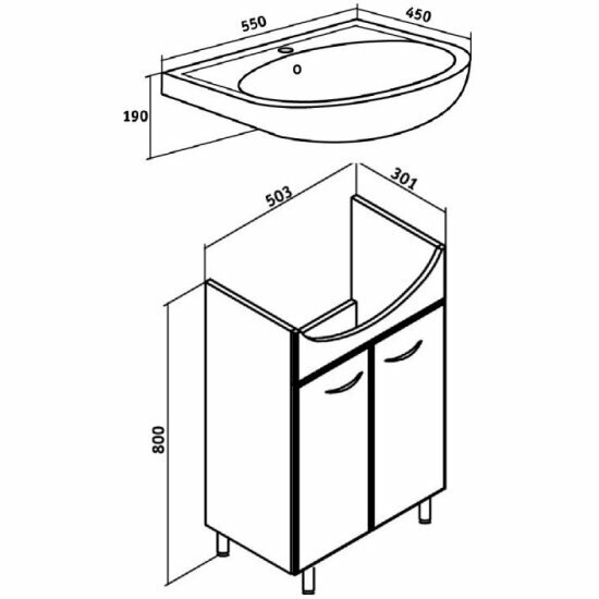 Высота, ширина и глубина в характеристиках указана только тумбы (без раковины). Габариты раковины, входящей в комплект, прописаны отдельно и представлены в галерее карточки товара. форма поставки - в собранном виде
