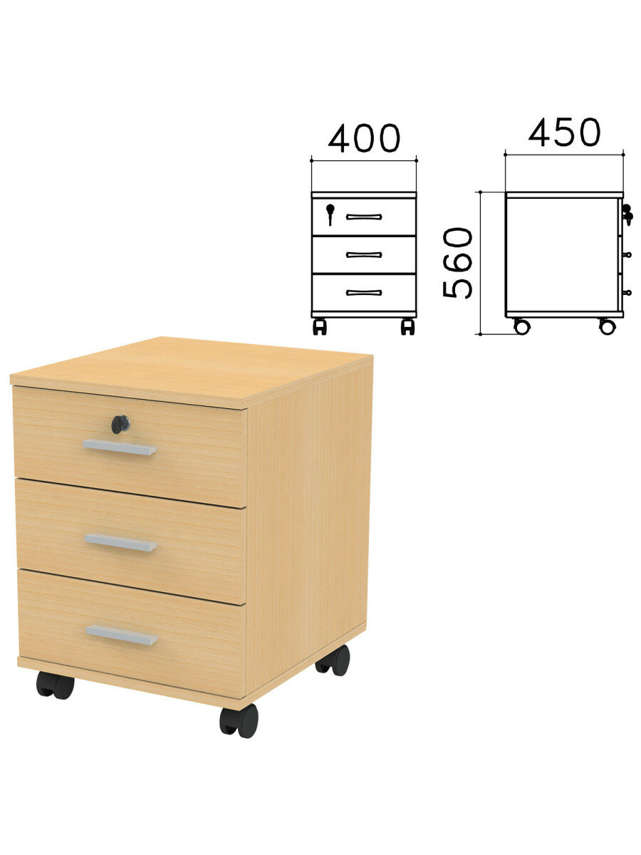 Тумба подкатная «Канц», 400450560 мм, 3 ящика, замок, цвет бук невский, ТК29.10: сравнение цен, характеристики, фото, актуальное наличие и цены.