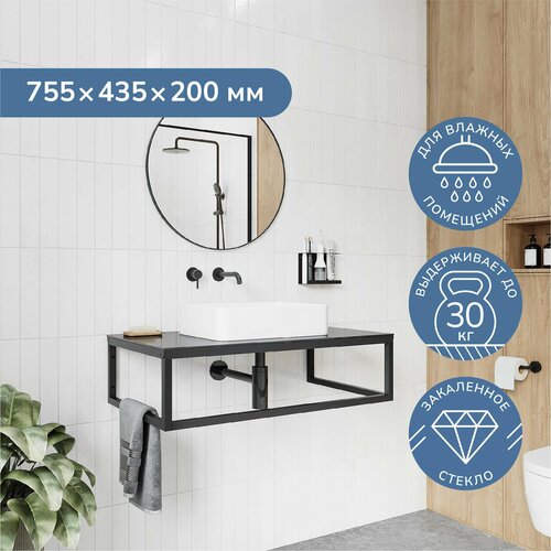 - Столешница, выполненная из черного закаленного стекла, не только придает изделию элегантный и современный вид, но и гарантирует надежность и безопасность в использовании. Закаленное стекло устойчиво к механическим повреждениям и легко очищается, что делает уход за тумбой простым и удобным.