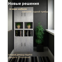 Тумба выполнена в светло-сером цвете, который легко впишется в любой интерьер. Материал корпуса – ЛДСП, что гарантирует прочность и долговечность изделия.