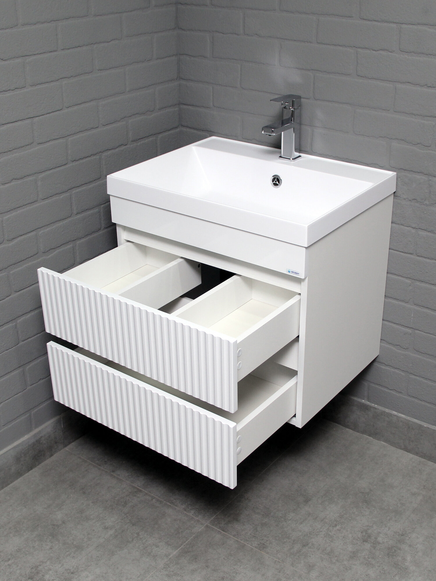 Купить Тумба подвесная под раковину 60 Бриз с двумя ящиками В2 Айсберг с доставкой по всей России.