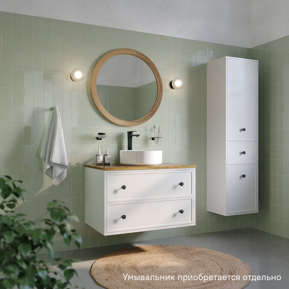• Два просторных выдвижных ящика закрываются плавно и бесшумно благодаря высококачественным скрытым направляющим с доводчиками Hettich. Внутри ящики графитового цвета – стильно и практично. • Многослойное покрытие матовой эмалью, предназначенной для использования в помещениях с высокой влажностью, позволит сохранить первоначальный вид мебели надолго (при должном уходе). • Надежная фурнитура Hettich рассчитана на 30 000 открываний – это более 10 лет исправной работы.