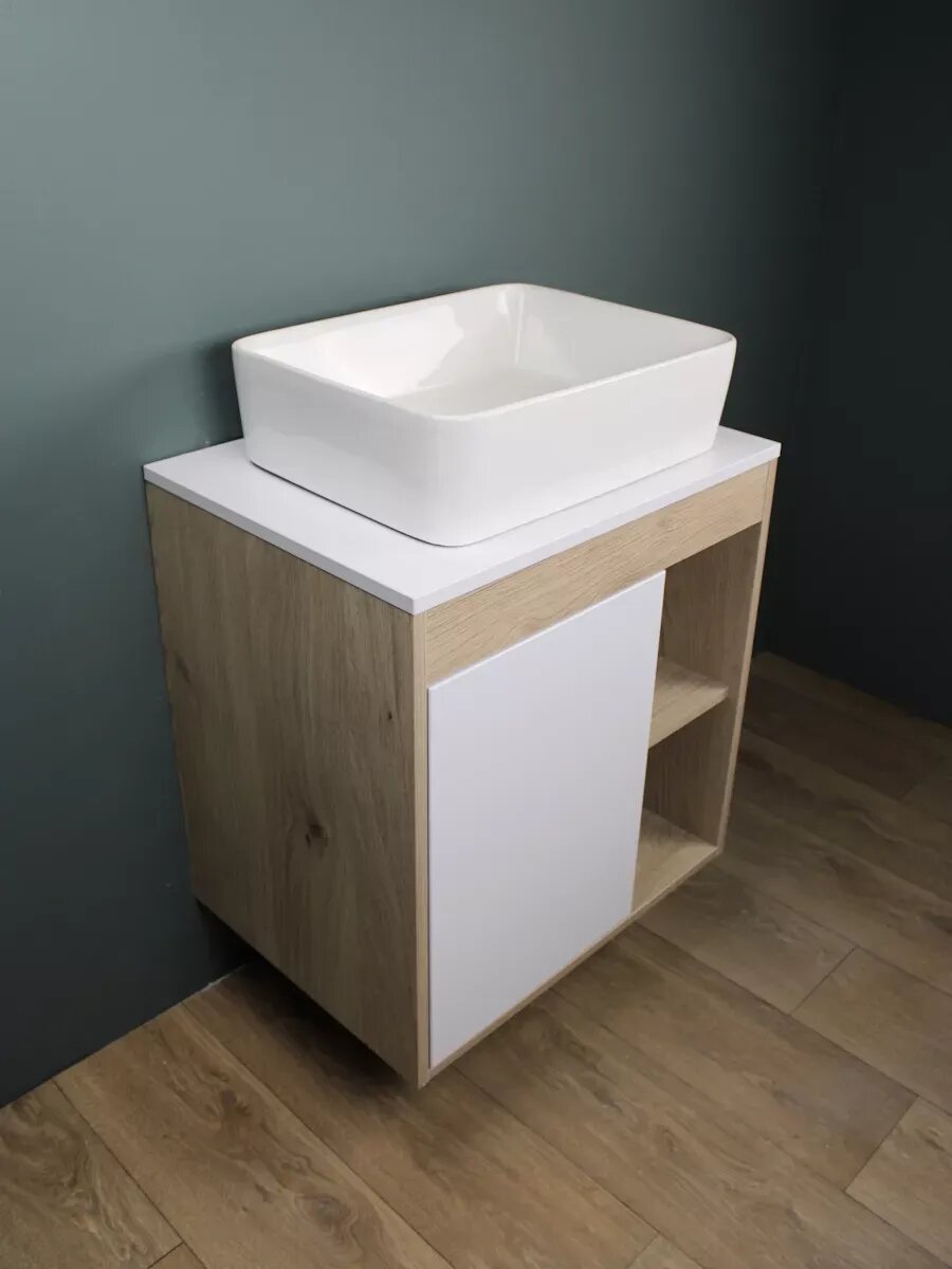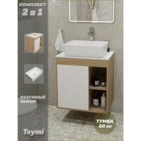 Купить Тумба подвесная с раковиной для ванной 60 см Teymi Nura корпус дуб фасад белый раковина Helmi 50 F03436 с доставкой по всей России. Тумба подвесная с раковиной для ванной 60 см Teymi Nura корпус дуб фасад белый раковина Helmi 50 F03436: сравнение цен, характеристики, фото, актуальное наличие и цены.