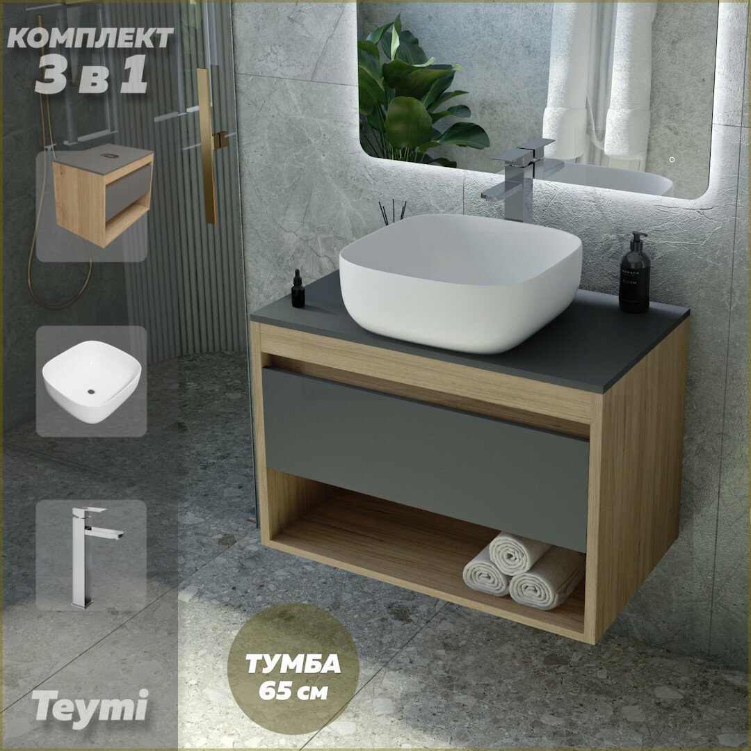 Купить Тумба подвесная с раковиной для ванной 65 см Teymi Ritta корпус дуб фасад графит раковина Solli 41 смеситель хром F04010 с доставкой по всей России. Тумба подвесная с раковиной для ванной 65 см Teymi Ritta корпус дуб фасад графит раковина Solli 41 смеситель хром F04010: сравнение цен, характеристики, фото, актуальное наличие и цены.
