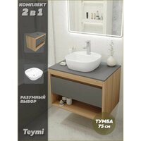 Купить Тумба подвесная с раковиной для ванной 75 см Teymi Ritta корпус дуб фасад графит раковина Solli 40 F03423 с доставкой по всей России. Тумба подвесная с раковиной для ванной 75 см Teymi Ritta корпус дуб фасад графит раковина Solli 40 F03423: сравнение цен, характеристики, фото, актуальное наличие и цены.