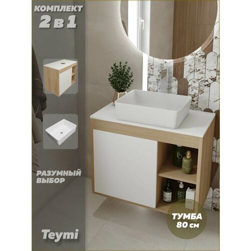 Купить Тумба подвесная с раковиной для ванной 80 см Teymi Nura корпус дуб фасад белый раковина Helmi 50 F13203 с доставкой по всей России. Тумба подвесная с раковиной для ванной 80 см Teymi Nura корпус дуб фасад белый раковина Helmi 50 F13203: сравнение цен, характеристики, фото, актуальное наличие и цены.