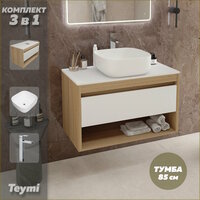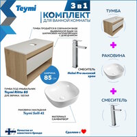 Купить Тумба подвесная с раковиной для ванной 85 см Teymi Ritta корпус дуб фасад белый раковина Solli 41 смеситель хром F11725 с доставкой по всей России. Тумба подвесная с раковиной для ванной 85 см Teymi Ritta корпус дуб фасад белый раковина Solli 41 смеситель хром F11725: сравнение цен, характеристики, фото, актуальное наличие и цены.