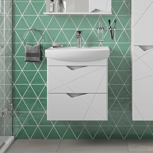 Купить Тумба подвесная SanStar Линни 55 с раковиной Клермонт 55 (комплект) для ванной комнаты, белая с доставкой по всей России.