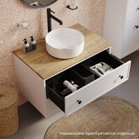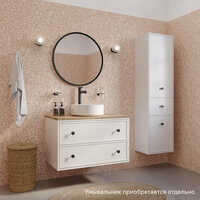 • Два просторных выдвижных ящика закрываются плавно и бесшумно благодаря высококачественным скрытым направляющим с доводчиками Hettich. Внутри ящики графитового цвета – стильно и практично. • Многослойное покрытие матовой эмалью, предназначенной для использования в помещениях с высокой влажностью, позволит сохранить первоначальный вид мебели надолго (при должном уходе). • Надежная фурнитура Hettich рассчитана на 30 000 открываний – это более 10 лет исправной работы.