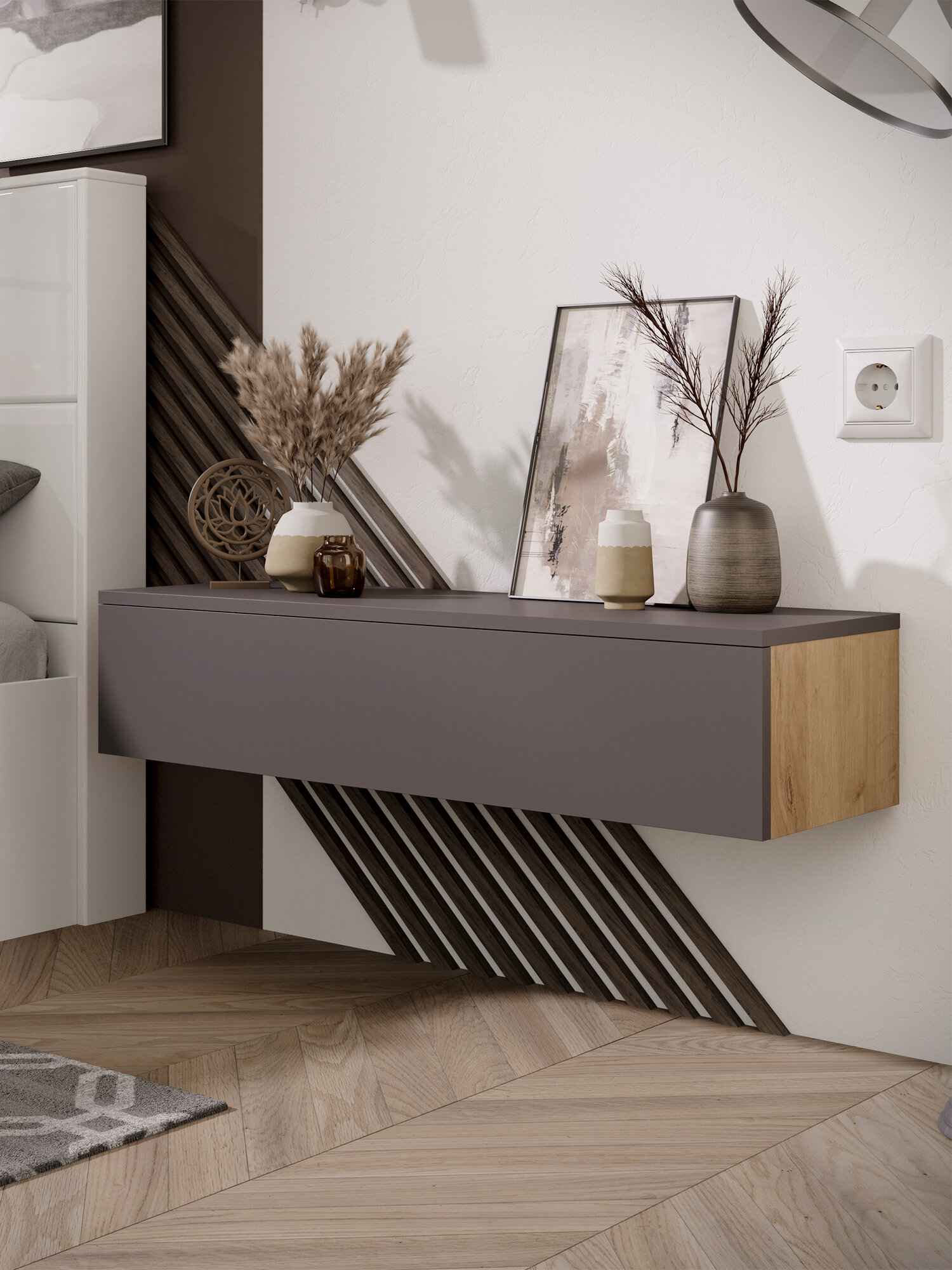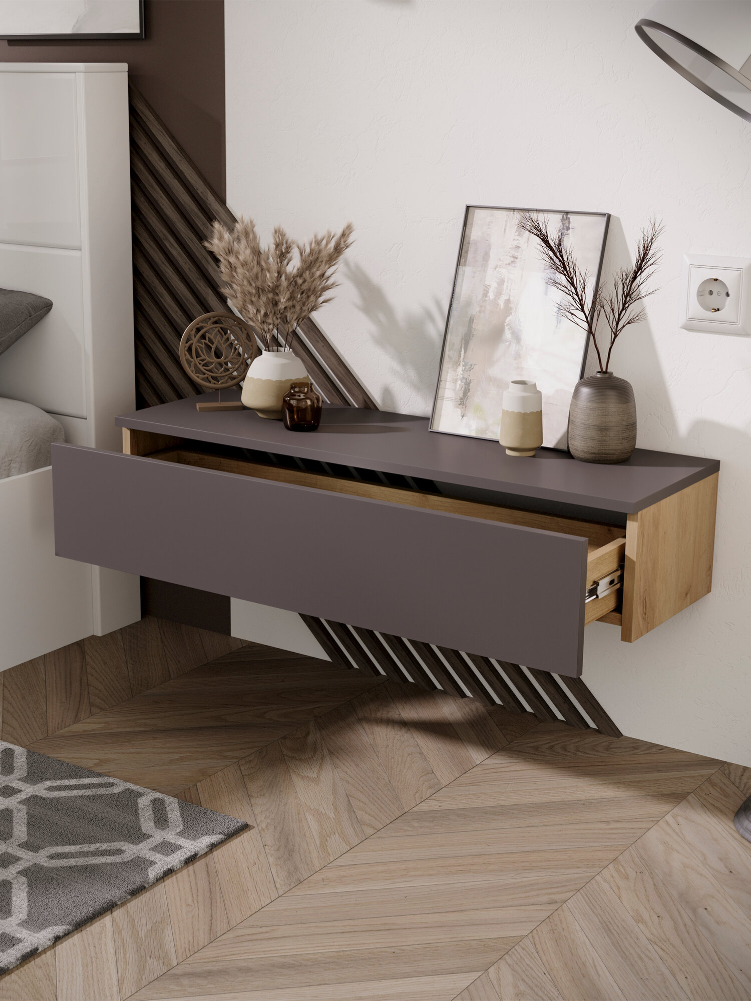Купить Тумба подвесная, прикроватная , тумба навесная Тип 2 ( Графит Серый/Дуб Крафт Золотой) с доставкой по всей России.
