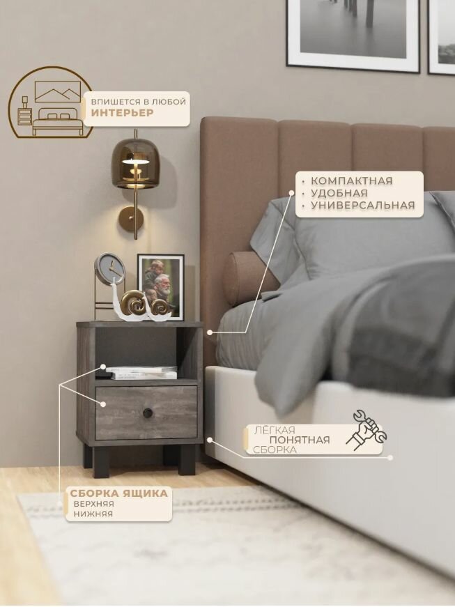 Прекрасное дополнение для вашей спальни – тумба прикроватная с ящиками. Эта мебель идеально впишется как в спальню, так и в другие комнаты дома, такие как гостиная или детская. Выдвижные ящики позволяют удобно хранить вещи. Мини-тумбочка может стать уютным столиком для телефона или красивым украшением интерьера. В прихожей тумбочка на ножках – отличное место для ключей и аксессуаров, на балконе - уютный уголок для цветка. Узкий дизайн позволяет ей поместиться даже в самых компактных коридорах и гардеробных комнатах. Мы предлагаем широкий выбор прикроватных тумб в разных стилях, чтобы удовлетворить любой вкус и бюджет. Для просмотра всех вариантов просто перейдите к нам в магазин.