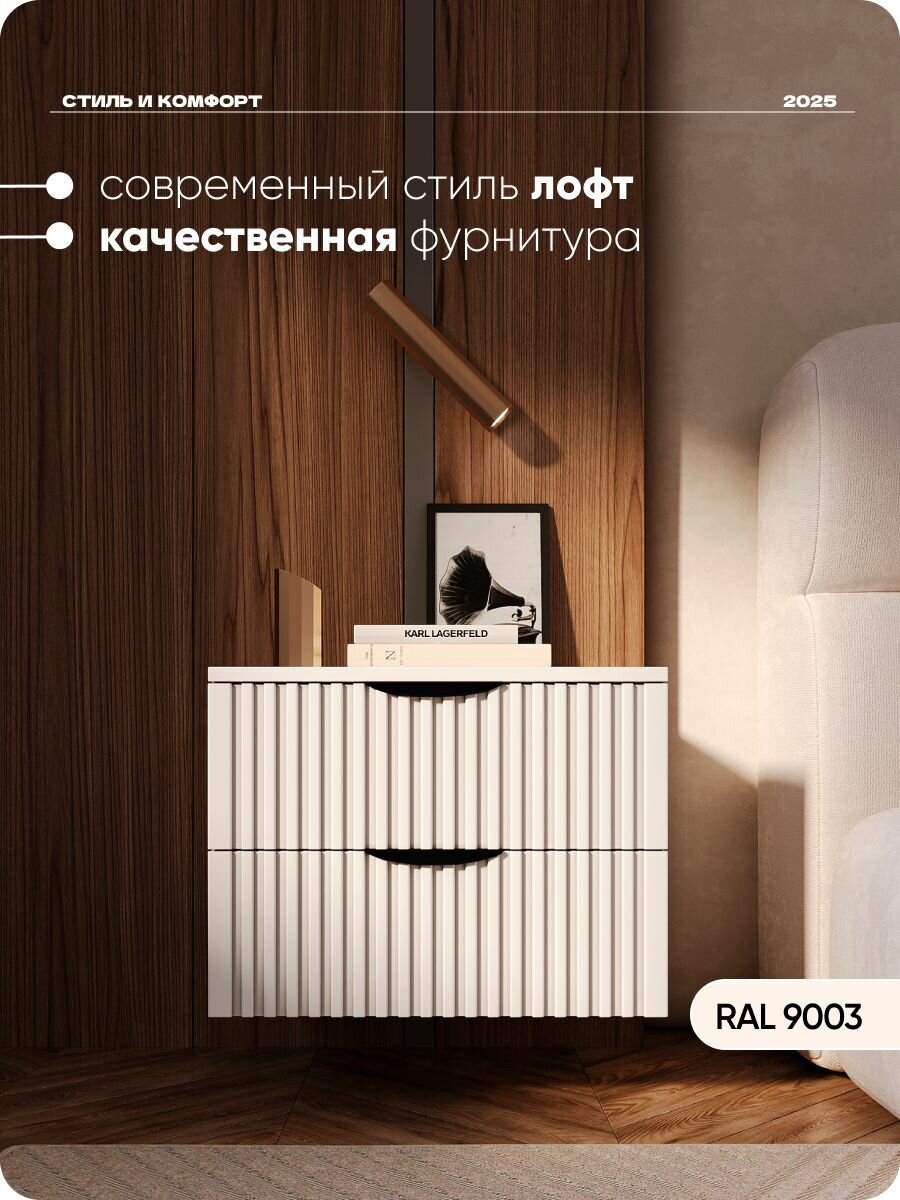 Тумба прикроватная белая с двумя ящиками из ЛДСП/МДФ 50х40х38 см: сравнение цен, характеристики, фото, актуальное наличие и цены.