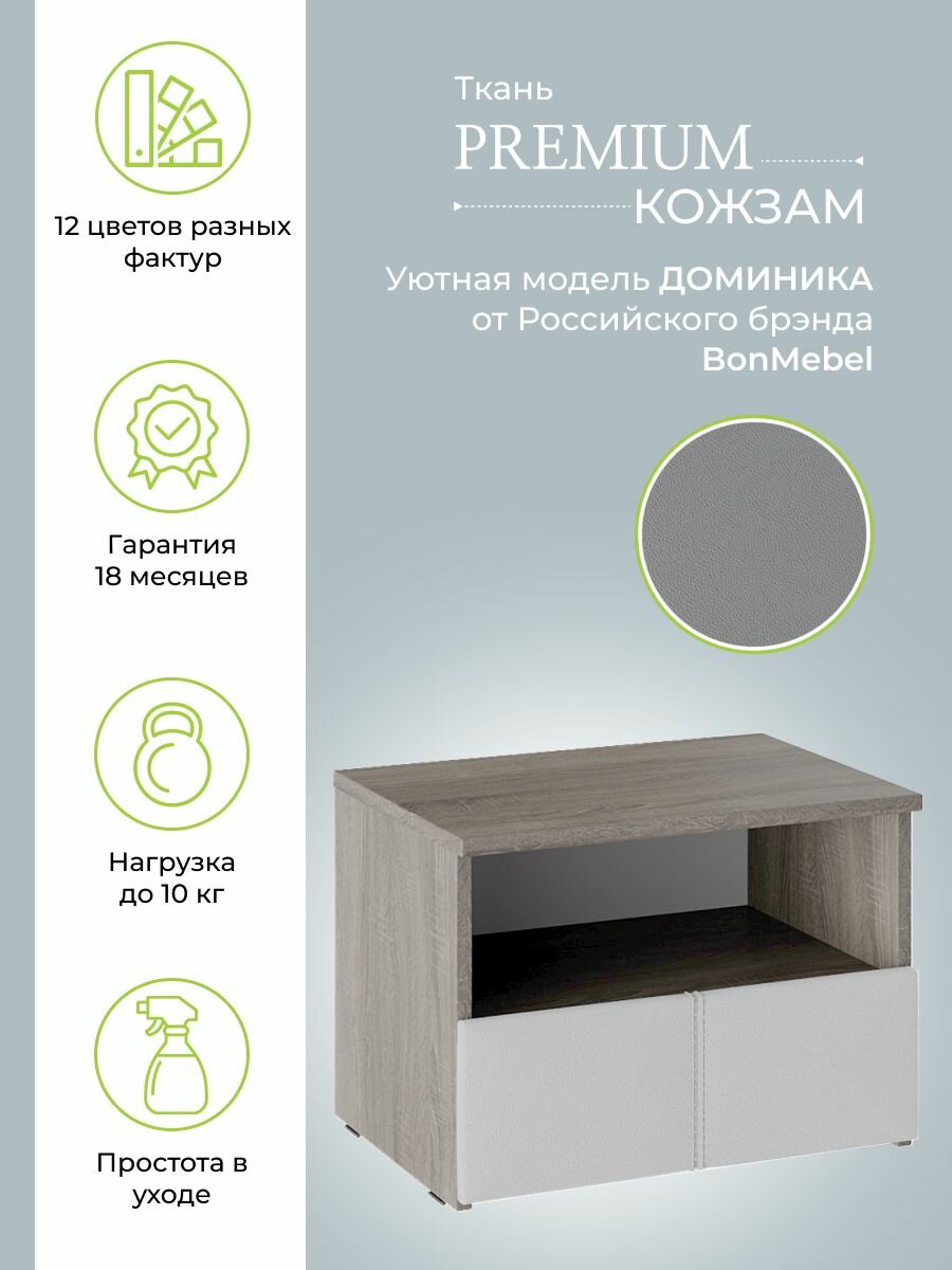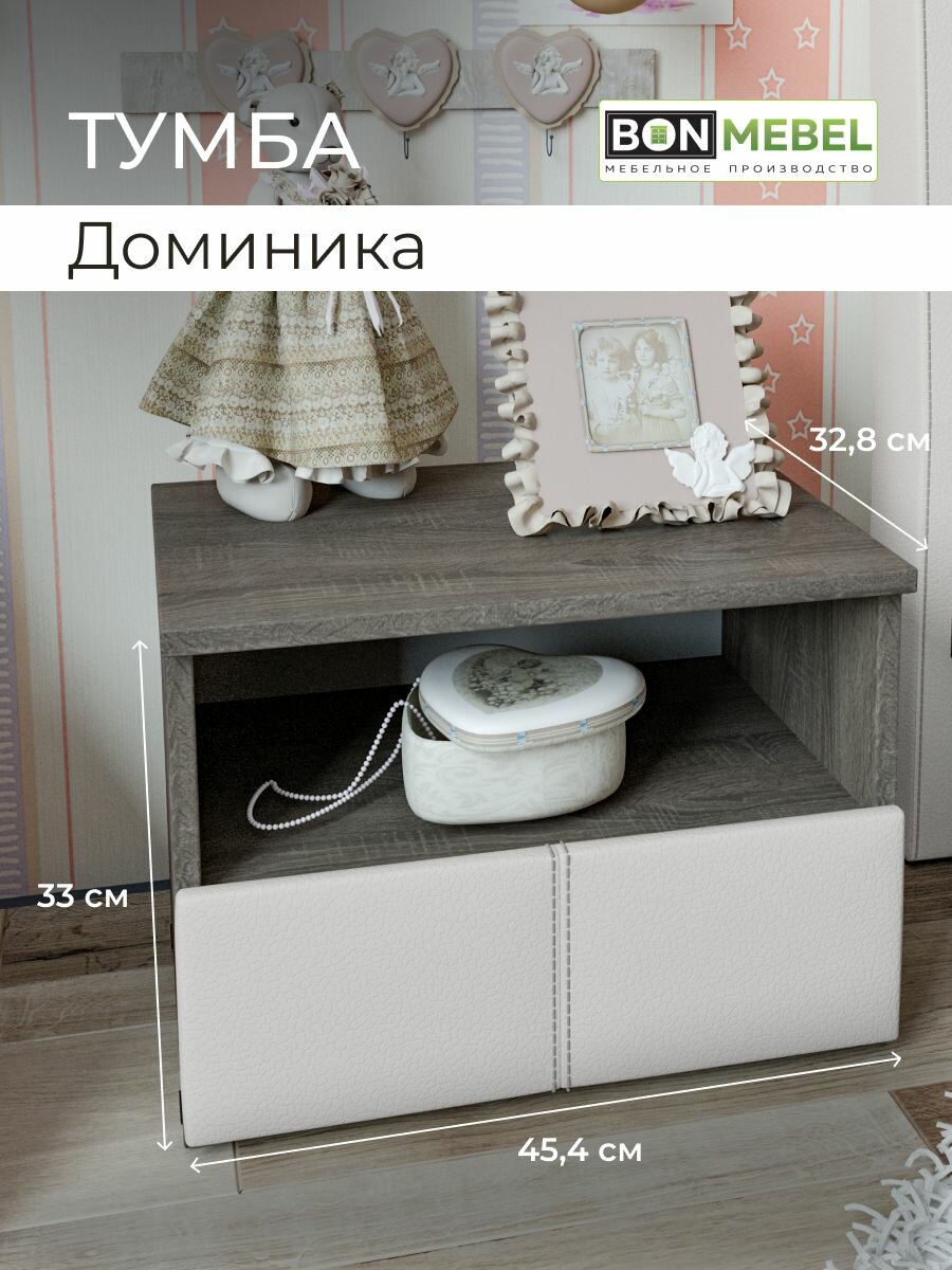 Тумба прикроватная BONMEBEL Доминика, цвет дуб сонома трюфель/ КЗ белый, напольная, с ящиком 45 см х 33см х 32 см: сравнение цен, характеристики, фото, актуальное наличие и цены.