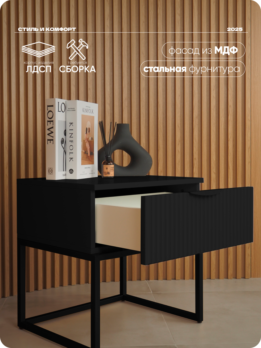 Тумба прикроватная черная на ножках черных из ЛДСП/МДФ 50х40х50 см: сравнение цен, характеристики, фото, актуальное наличие и цены.