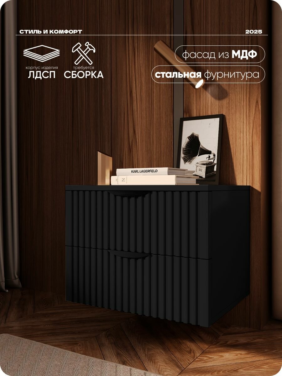Тумба прикроватная черная с двумя ящиками из МДФ 40х40х38 см: сравнение цен, характеристики, фото, актуальное наличие и цены.